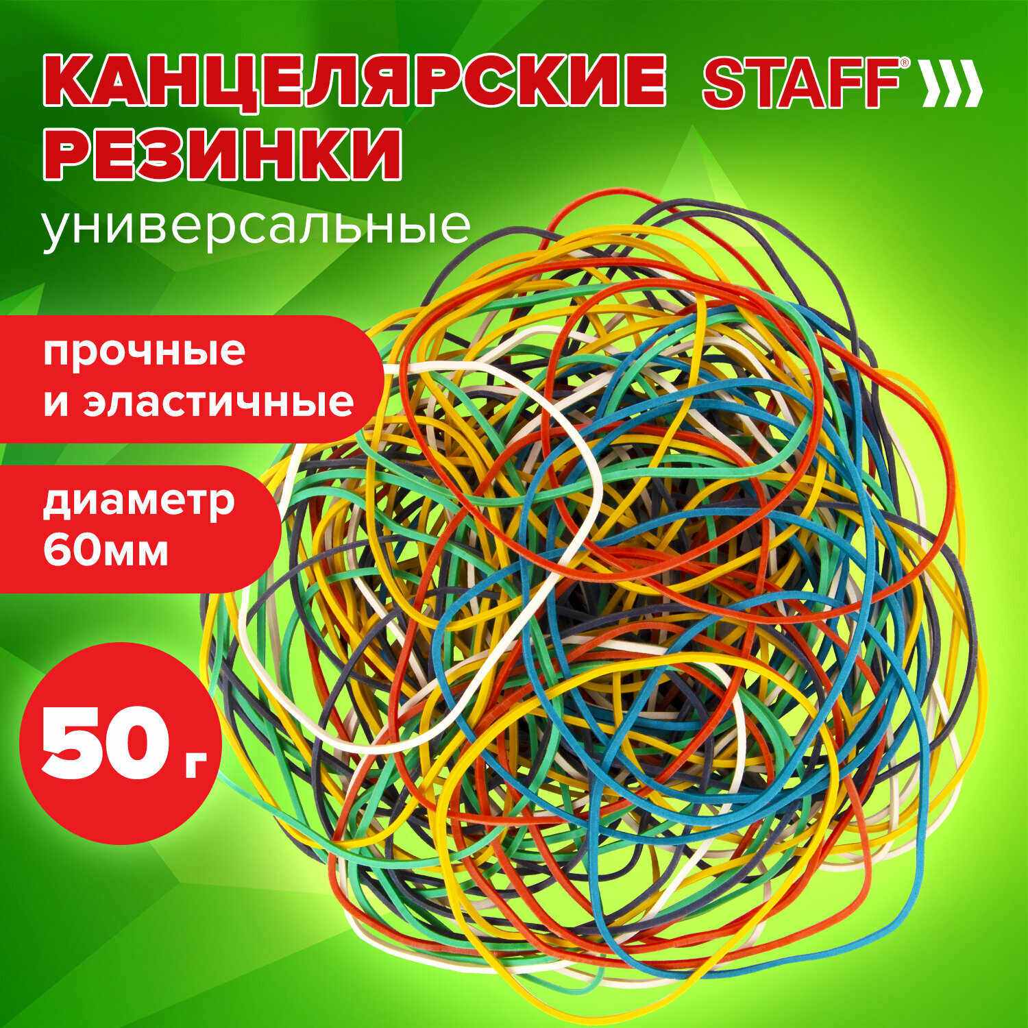 Купить Резинки Brauberg STAFF 50 г, банковские универсальные диаметром 60 мм, цветные, натуральный каучук, 440117