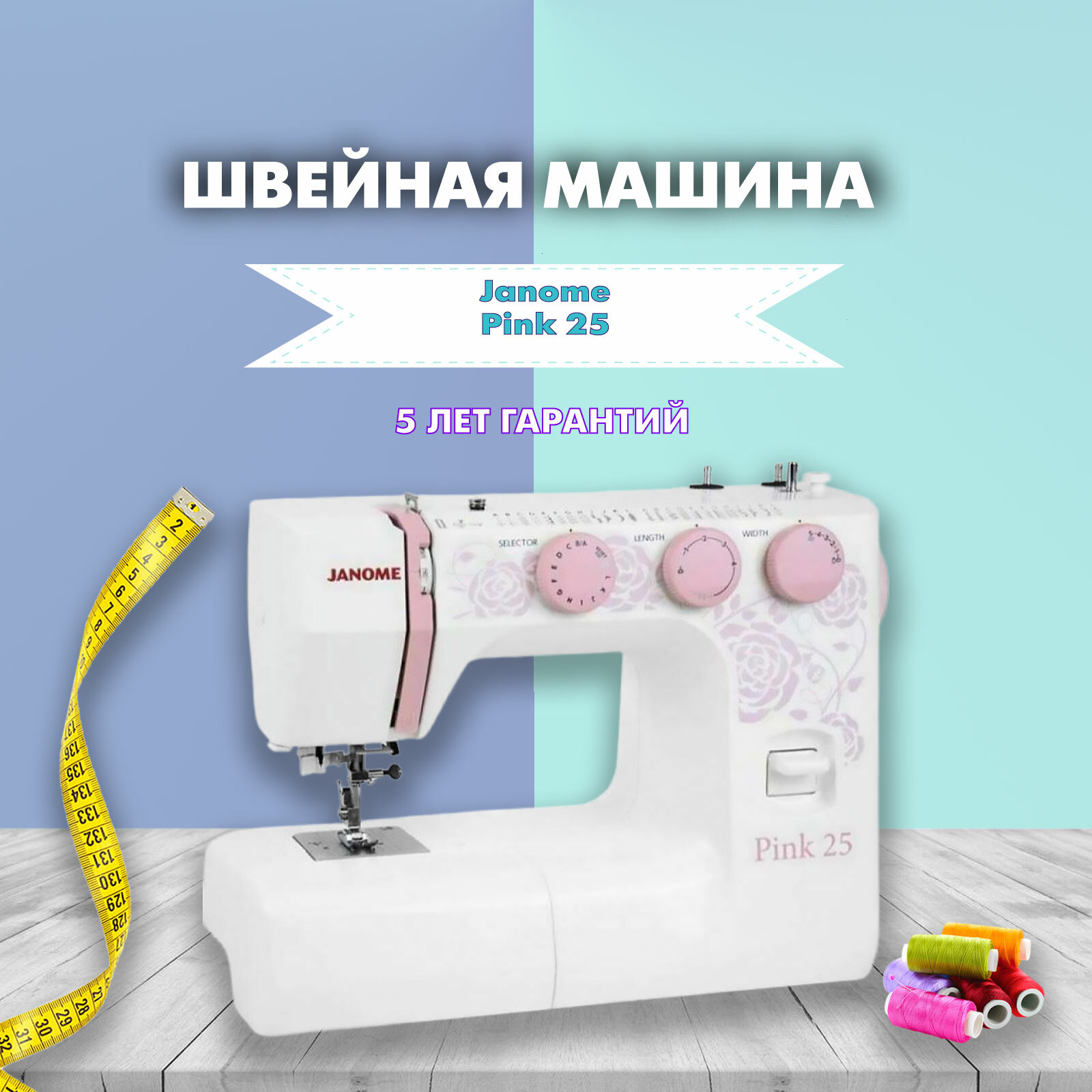 Швейная машина Janome Pink 25 Бело-розовый / Электромеханическая швейная машинка / 25 операций / Швейное оборудование