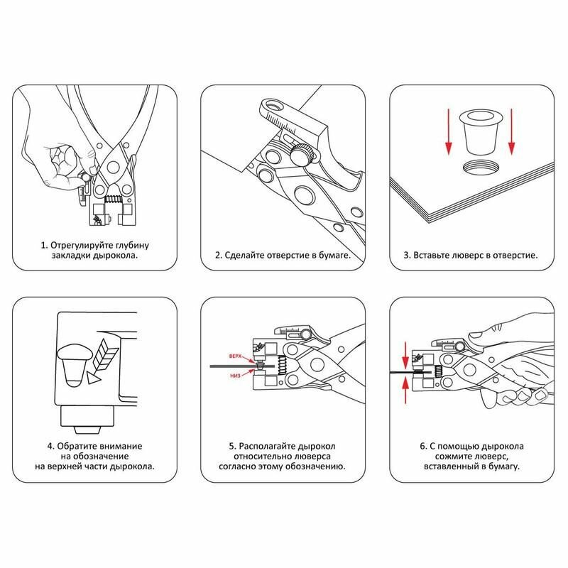 | Плюсы: | хорошо пробивает бумагу и закрепляет люверс. |
