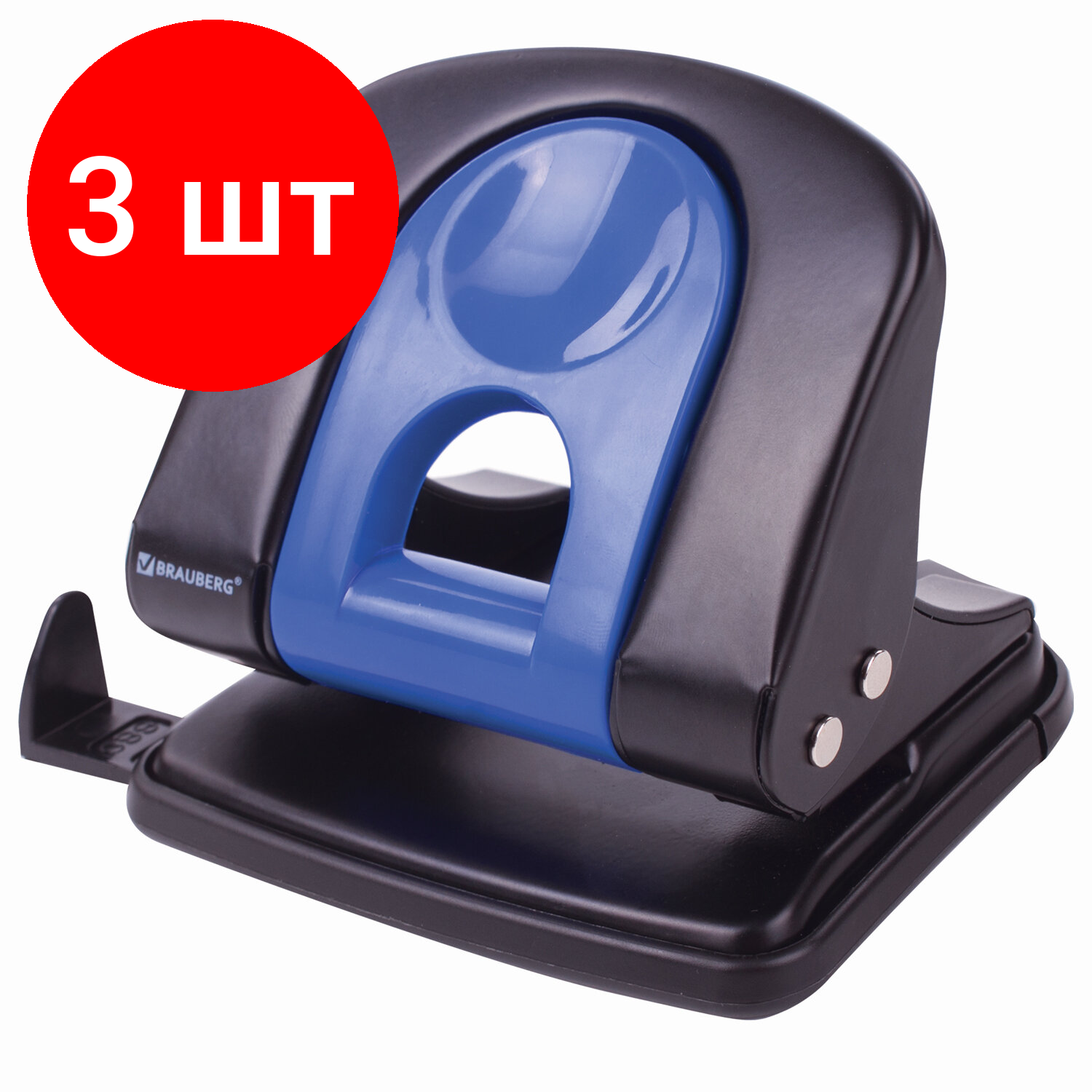 Купить Комплект 3 шт, Дырокол металлический BRAUBERG "Office Expert", до 25 листов, черно-синий, 228604