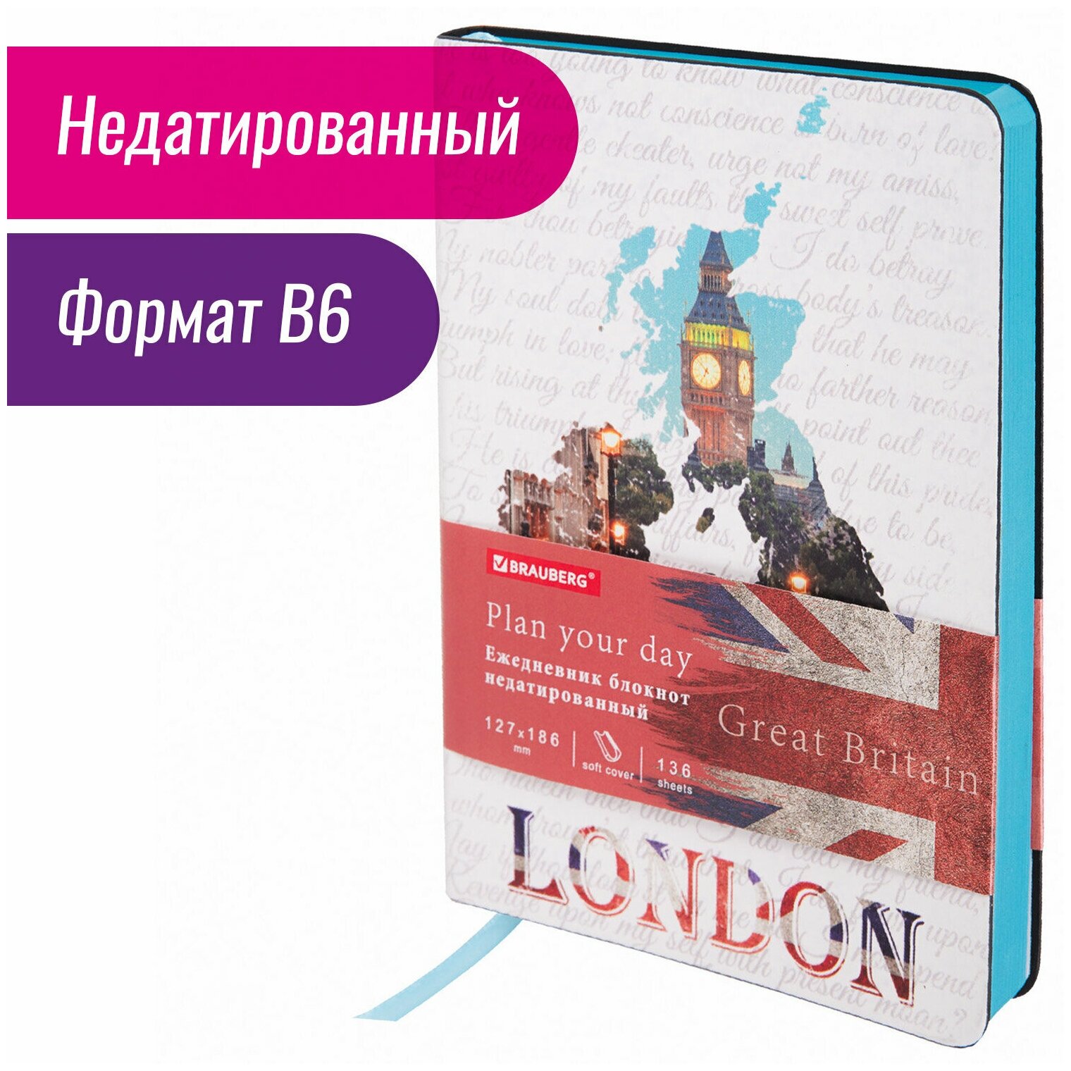 СохранитьЕжедневник недатированный B6 (127×186 мм), BRAUBERG VISTA, под кожу, гибкий, 136 л., «Great Britain», 112108 интересное: