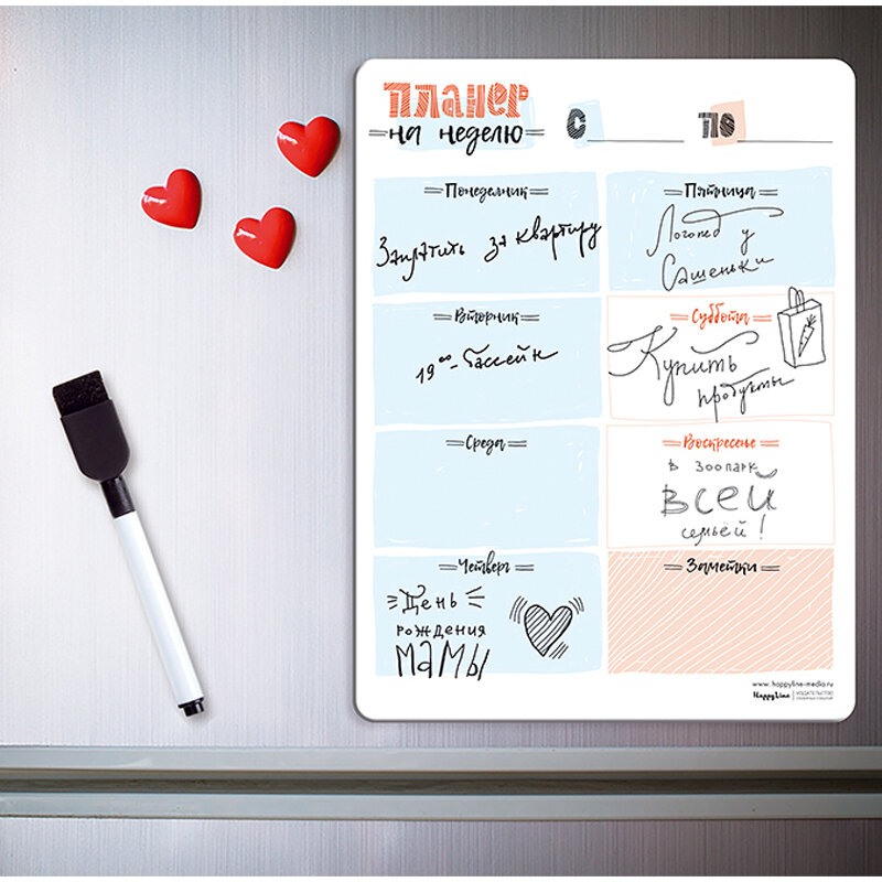 СохранитьКомплект 3 шт, Планер магнитный с маркером HappyLine "На неделю", 22*29см интересное: