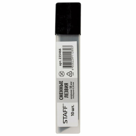 Лезвия для ножей 18 мм комплект 10 ШТ., толщина лезвия 0.38 мм, в пластиковом пенале, STAFF "Basic", 235466