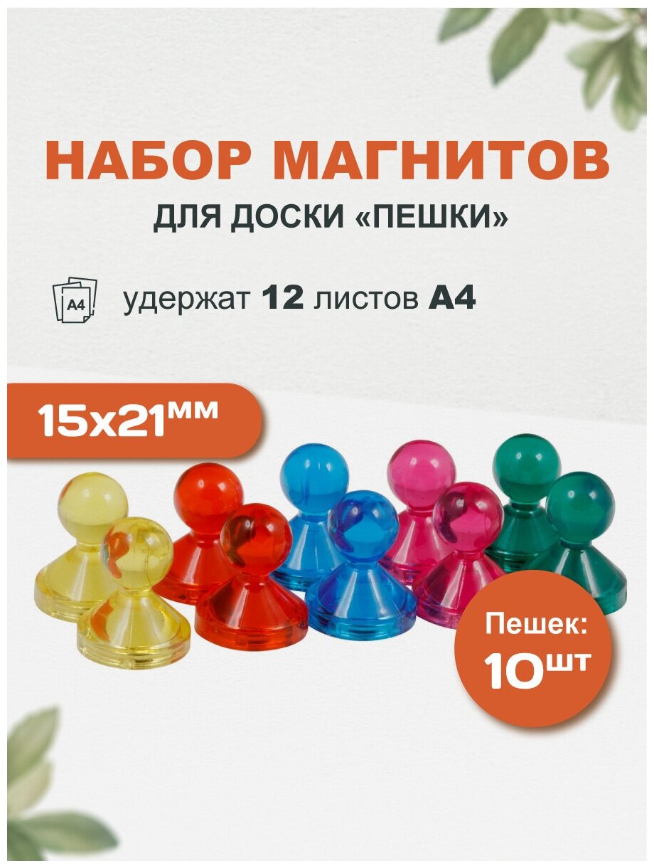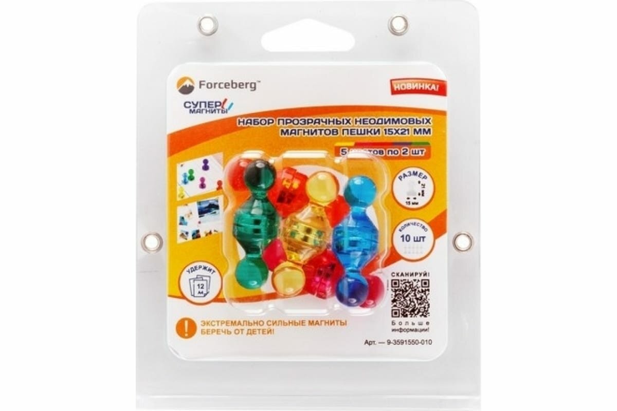 Набор разноцветных прозрачных неодимовых магнитов для магнитной доски Пешка Forceberg 15х21 мм, 10 шт