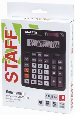 Купить Калькулятор STAFF PLUS настольный STF-333, 16 разрядов, двойное питание, 200x154 мм