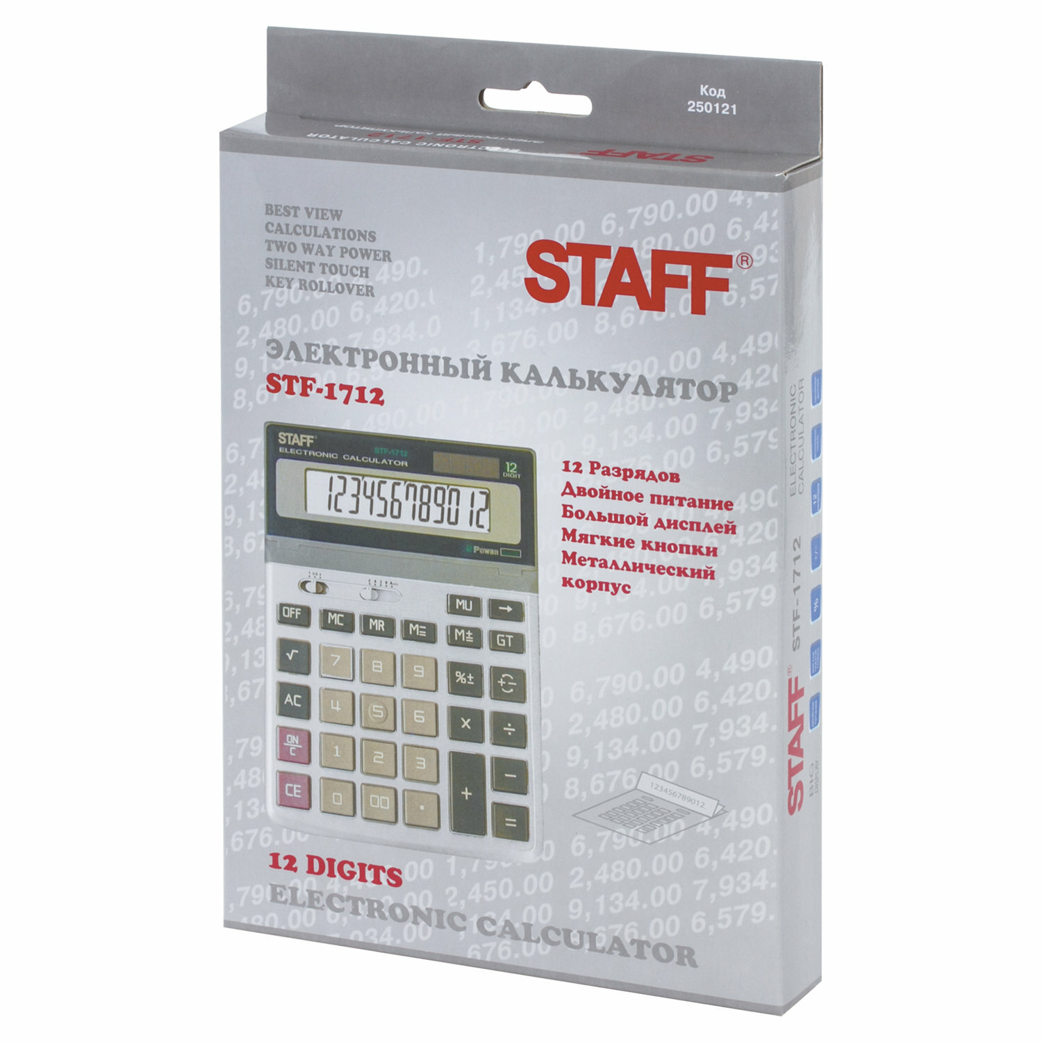 Калькулятор настольный металлический STAFF STF-1712 (200х152 мм), 12 разрядов, двойное питание, 250121, 250121