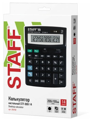 Калькулятор настольный STAFF STF-888-14 (200х150 мм), 14 разрядов, двойное питание, 250182, 250182