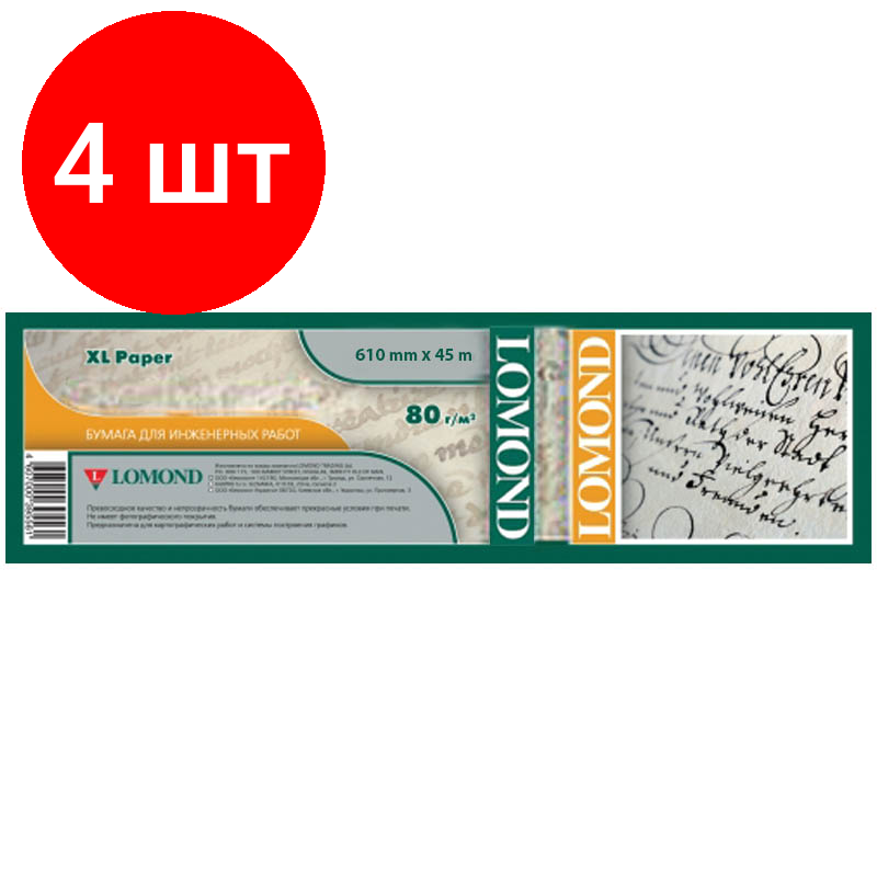 Купить Комплект 4 шт, Бумага для плоттера офсетная Lomond, 610мм*45м, 80г/м2, вт. 50.8мм, "Премиум"