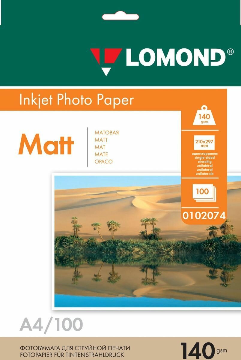 Фотобумага Lomond матовая, А4, 140 г/м2, односторонняя, 100 листов (102074)
