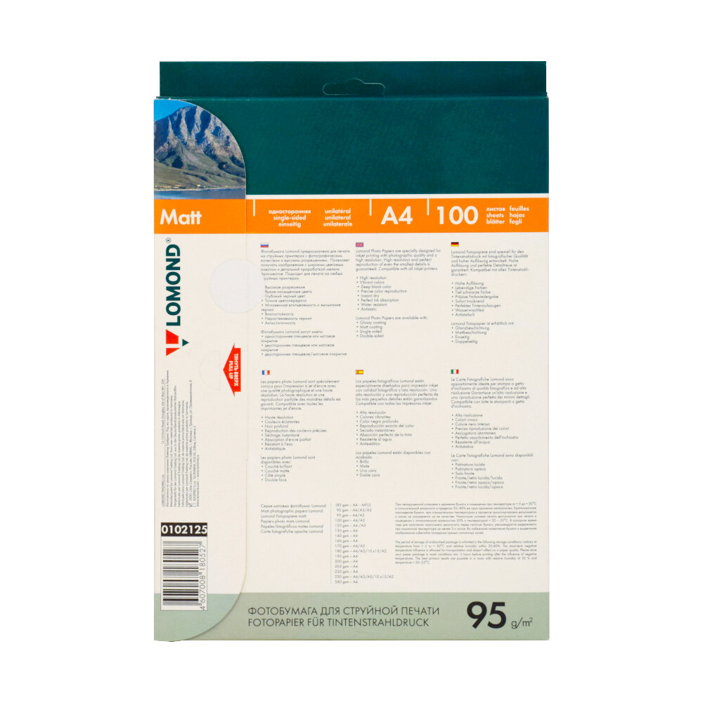 Фотобумага А4, 95 г/м2, 100 листов, односторонняя, матовая, Lomond 0102125