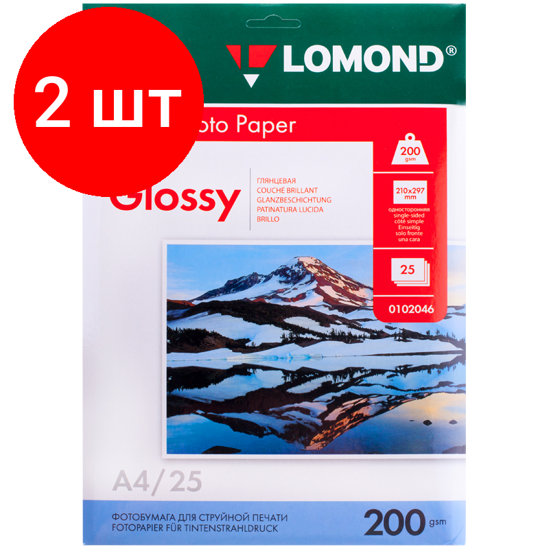 Купить Комплект 2 шт, Фотобумага А4 для стр. принтеров Lomond, 200г/м2 (25л) глянцевая односторонняя