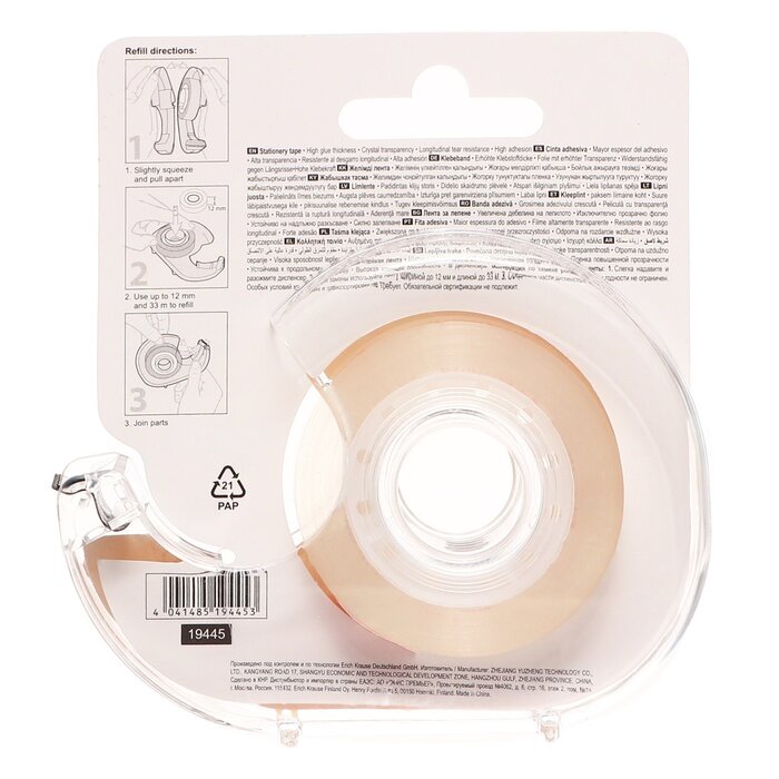 Клейкая лента Erich Krause в диспенсере, Crystal, 12 мм*25 м (19445)