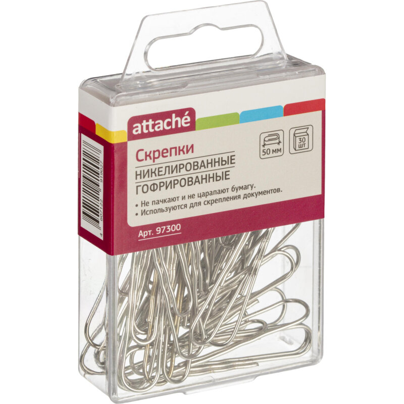 Скрепки Attache металлические никелированные гофрированные 50 мм (30 штук в упаковке), 97300