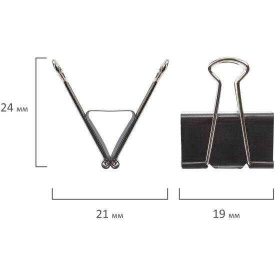 Зажимы для бумаг STAFF, комплект 12 шт., 19 мм, на 60 листов, черные, картонная коробка, 224606, (12 шт.)
