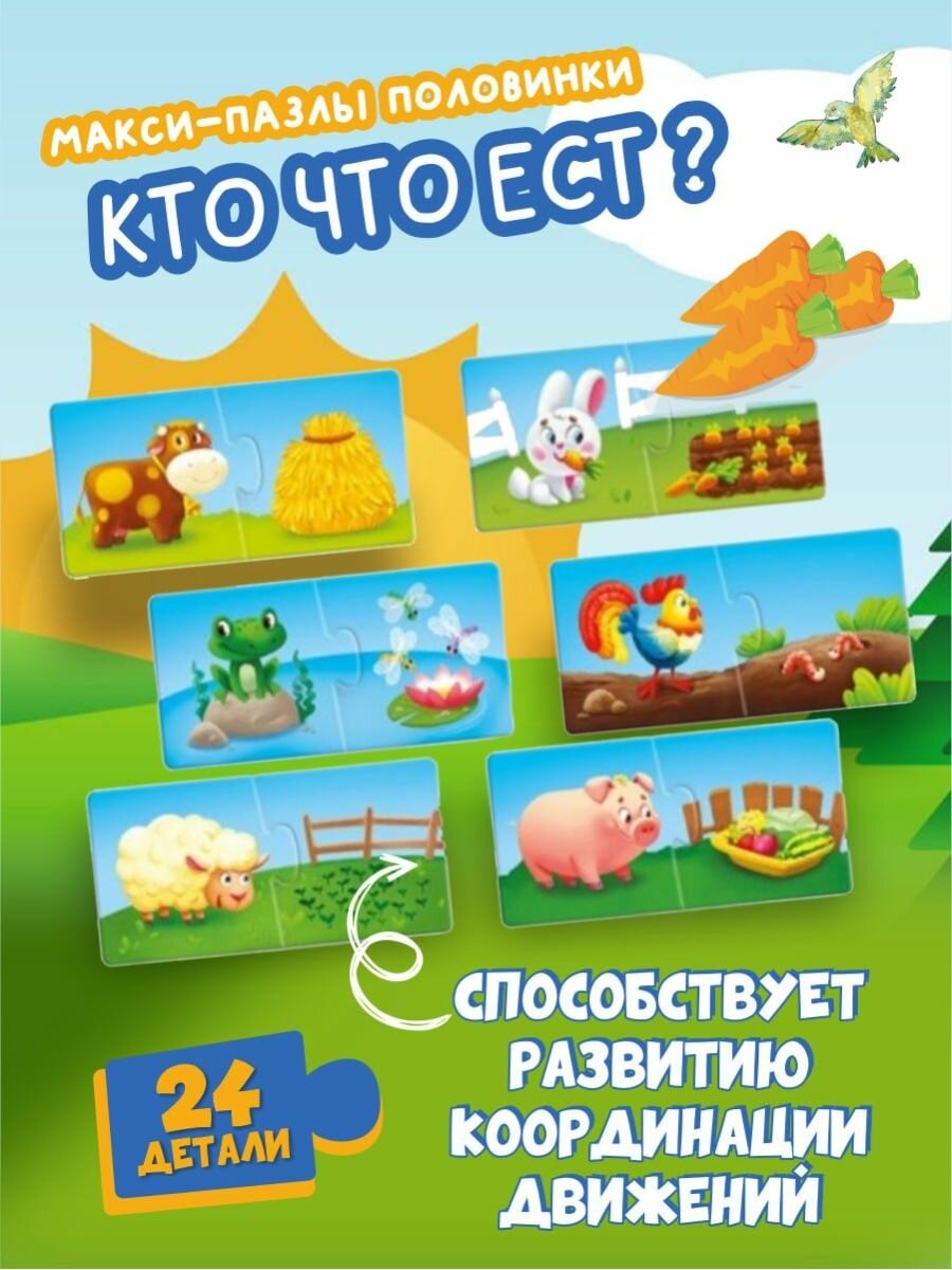 Макси-пазл «Половинки. Кто что ест?», 24 элемента