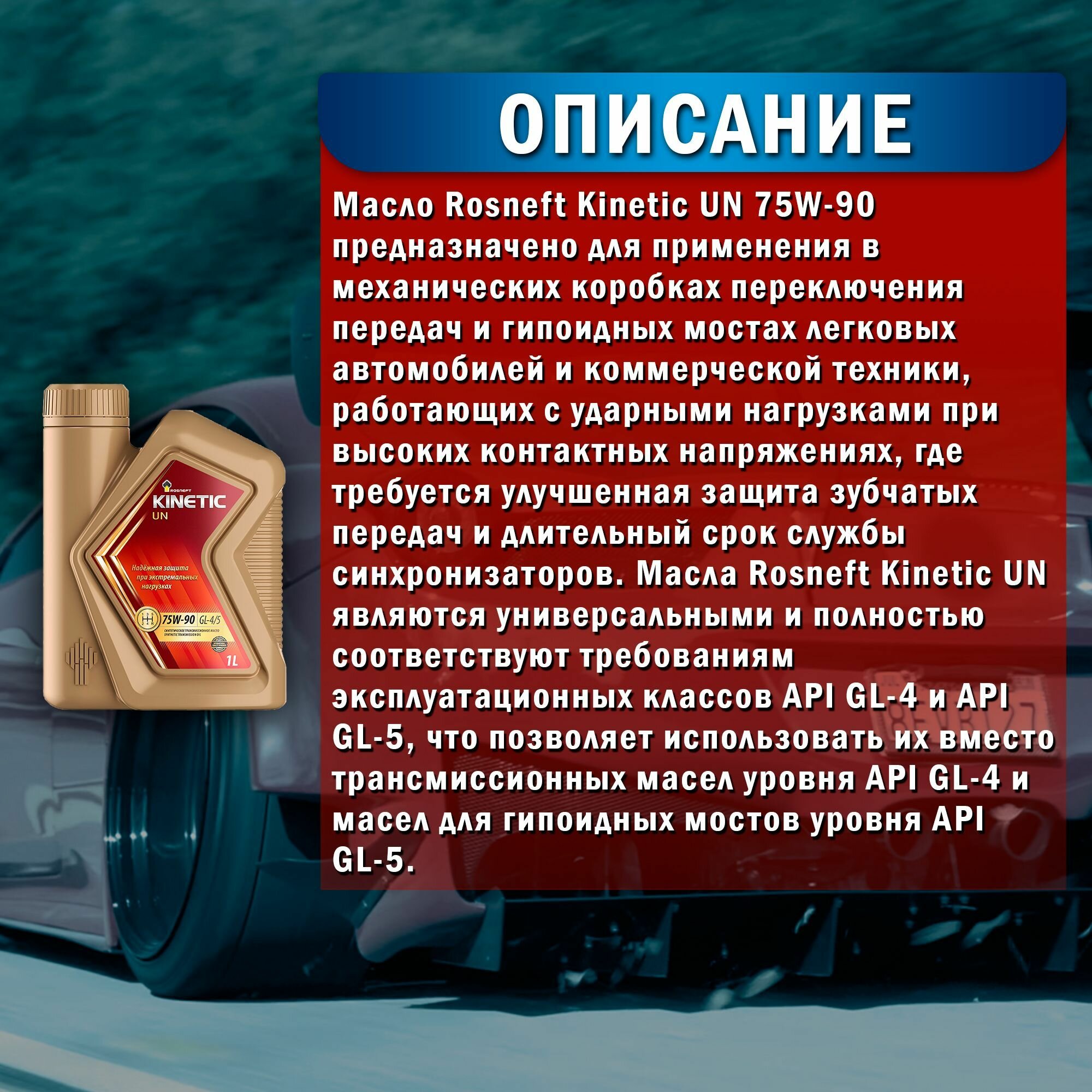 Масло Трансмиссионное Rosneft Kinetic Un 75w90 Синтетическое 1 Л 40817232 Rosneft арт. 40817232