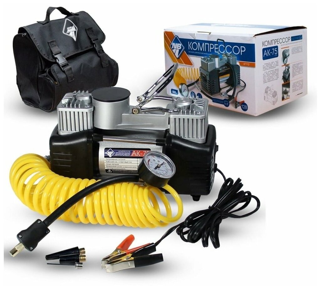 Компрессор автомобильный Nova Bright АК-75 двухпоршневой, металлический корпус, в сумке, 12В 3853309 .