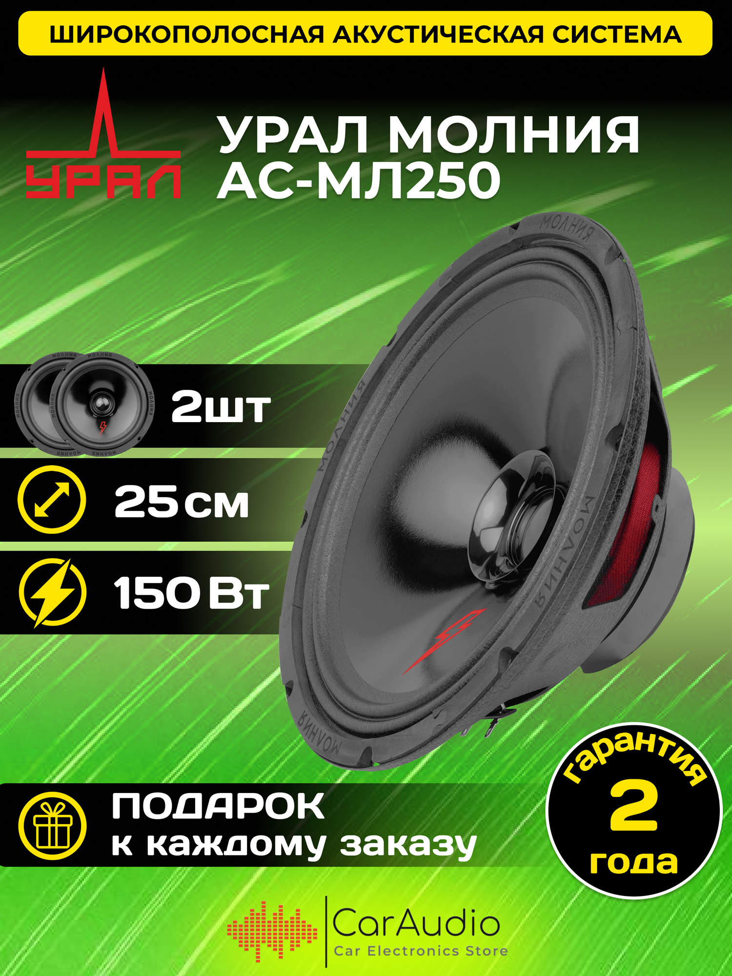 Колонки автомобильные URAL Молния АС-МЛ250, 25 см (10 дюйм.), комплект 2 шт. [урал ас-мл250]