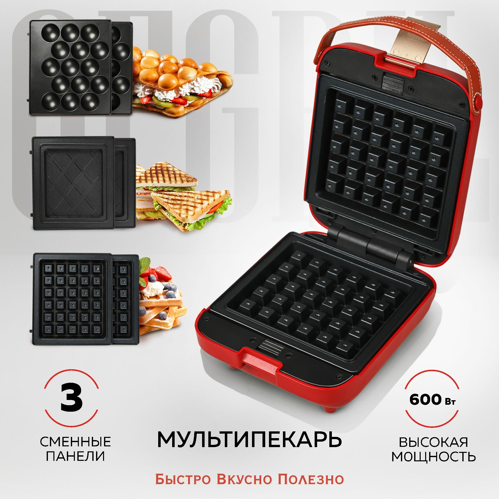 GFGRIL Мультипекарь мини вафельница электрическая 3 в 1 GFW-031, 3 сменные панели: вафли, пончики, гриль