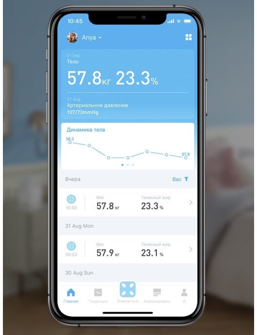 | Минусы: | Периодически отрубаются от WiFi, чтобы гарантированно взвеситься с анализом нужно делать это при помощи приложения на телефоне через Bluetooth |