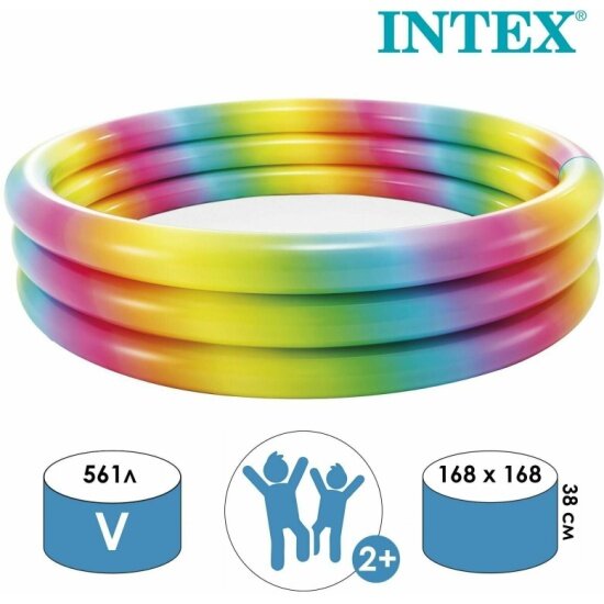 Intex надувной 168х38см 581л, от 2 лет (радужный)