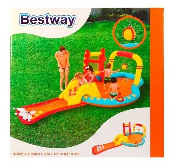 Надувной игровой центр Bestway 53068 BW 435х213х117см "Маленькие чемпионы" с разбрыз., горкой и игрушками, 314л, от 2 лет