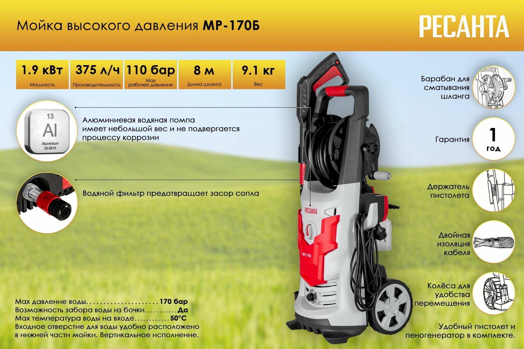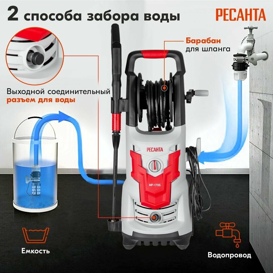 Мойка высокого давления Ресанта МР-170Б с функцией самовсасывания, автомойка, керхер.