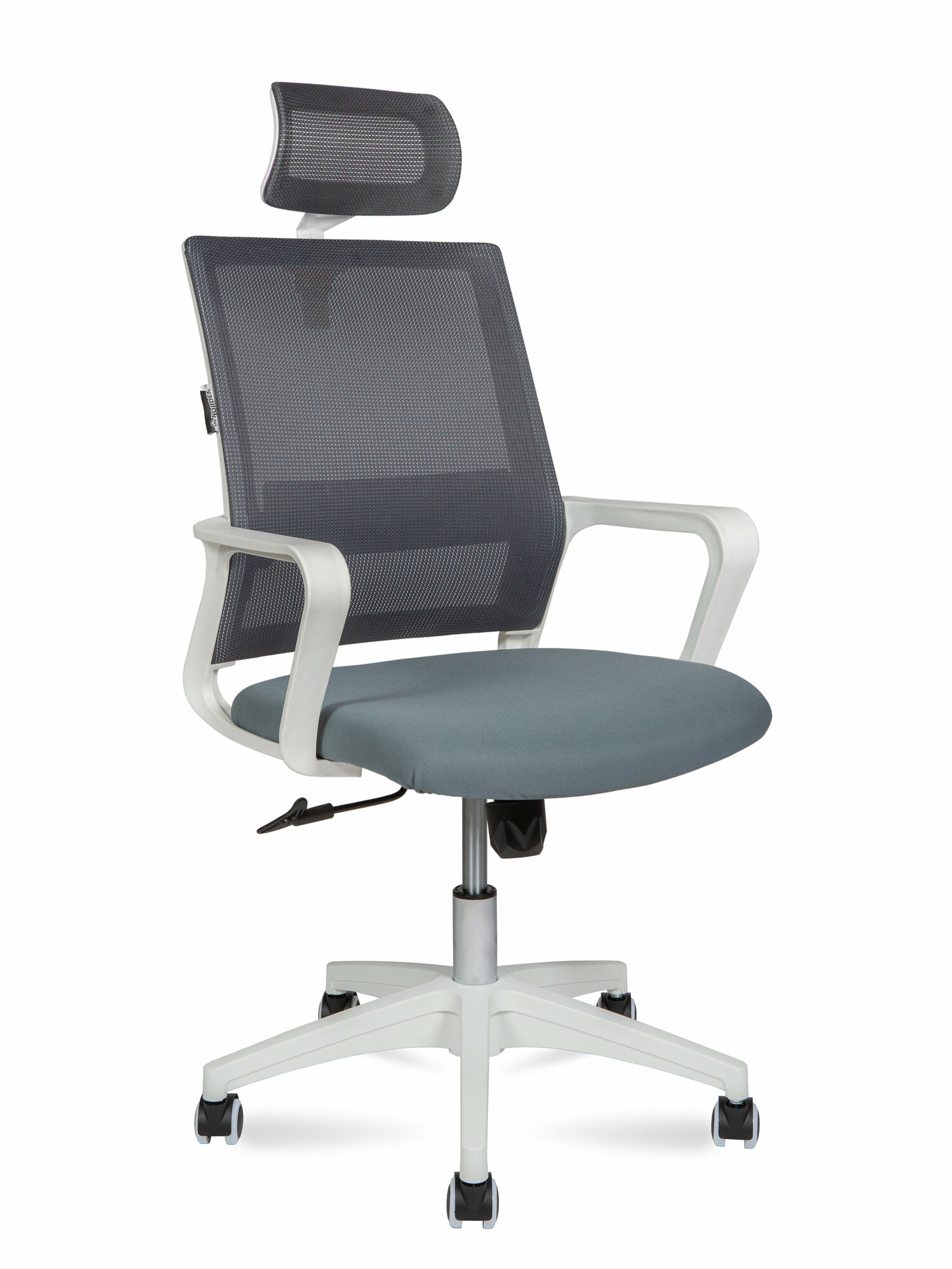 Кресло офисное Norden Бит / белый пластик / серая сетка / темно серая ткань