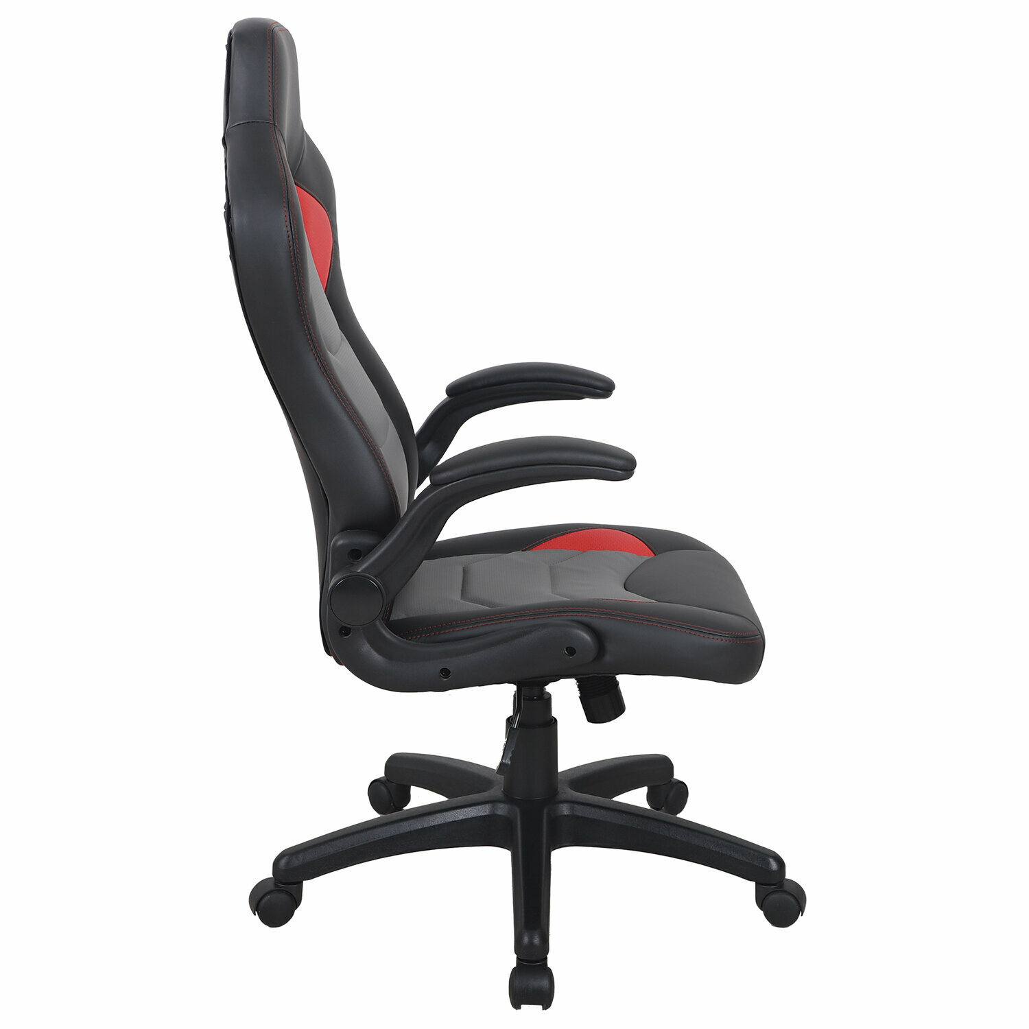 Кресло компьютерное BRABIX Skill GM-005, откидные подлокотники, экокожа, черное/красное, 532496