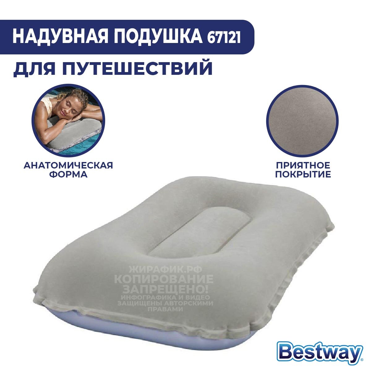 Подушка для путешествий Bestway / надувная подушка / серая интересное: