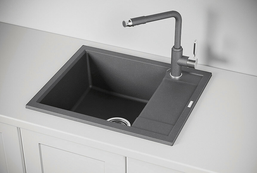 6002, графит (чёрно-серый), кухонная мойка, кварц