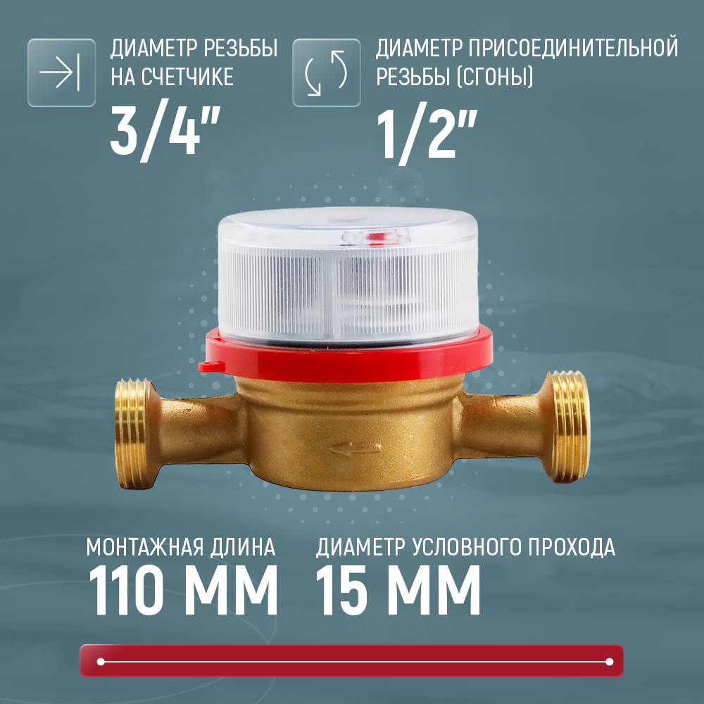 Универсальный счётчик Декаст ВСКМ-15 (110 мм, без кмч), L110, Ду15