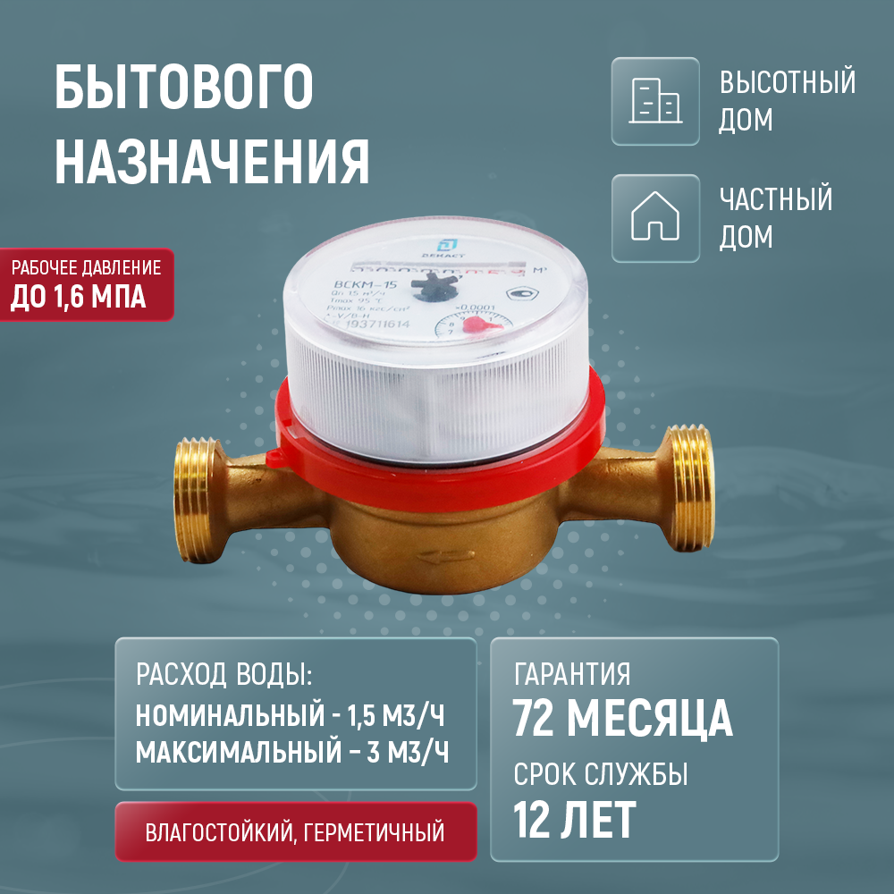Счетчик воды декаст ВСКМ-15 72-15-249