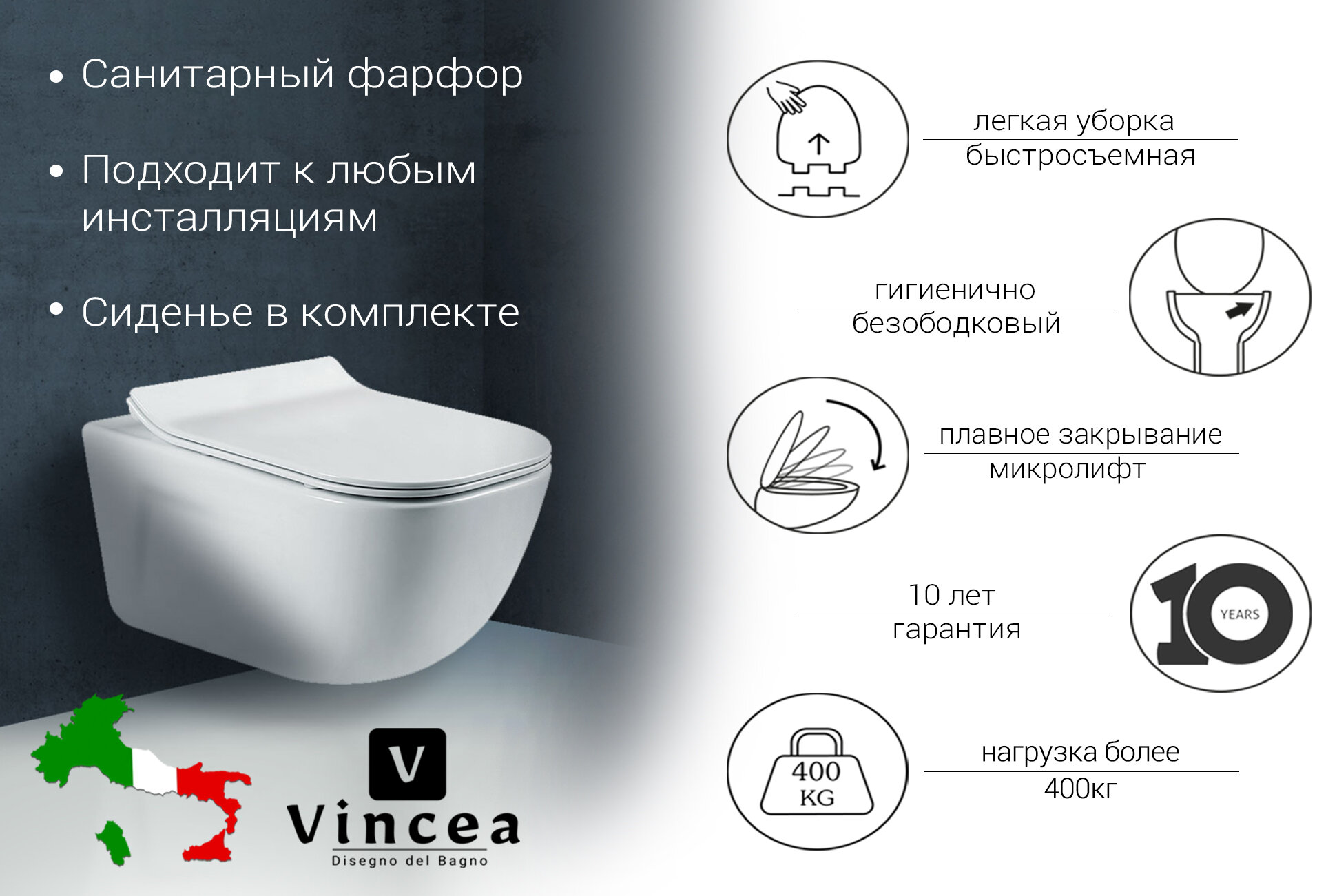 Vincea Унитаз подвесной Vincea Idea VT1-33 белый, ультратонкое сиденье soft-close