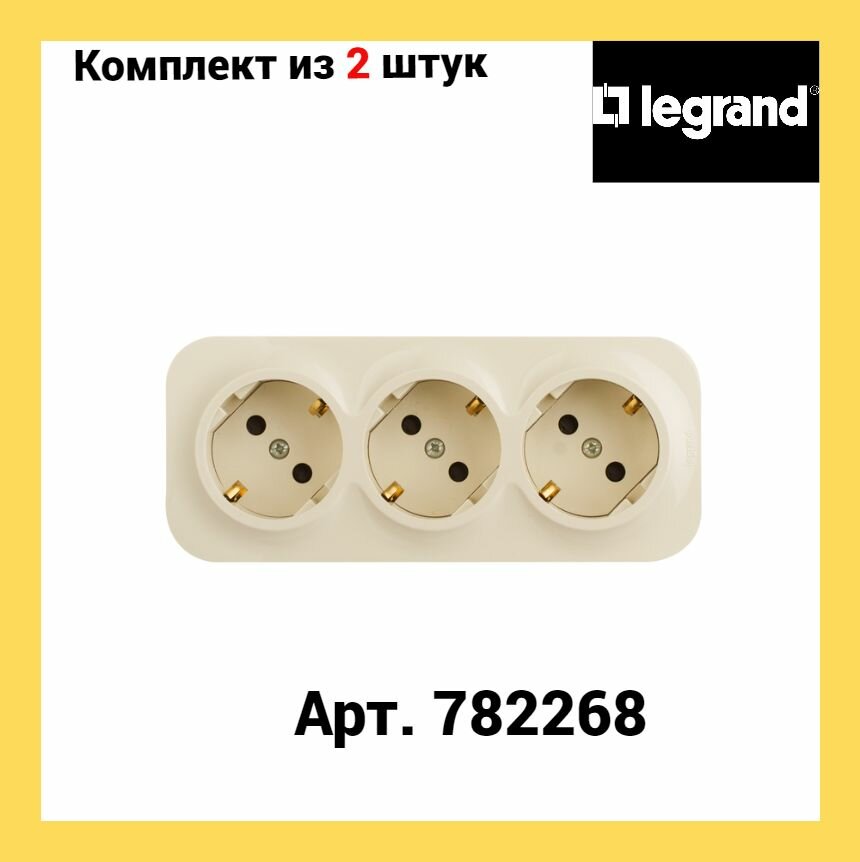 2шт. - Quteo розеточный блок с предварительным подключением 3 x 2К+З с защитными шторками - 16 A - 250 В IP 20 - Слоновая кость / Legrand; арт. 782268; оригинал / - комплект 2шт