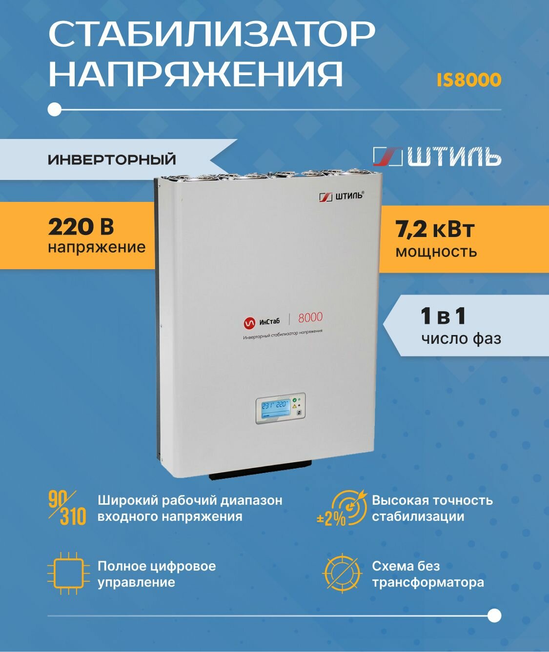 Штиль Однофазный стабилизатор переменного напряжения ИнСтаб IS8000