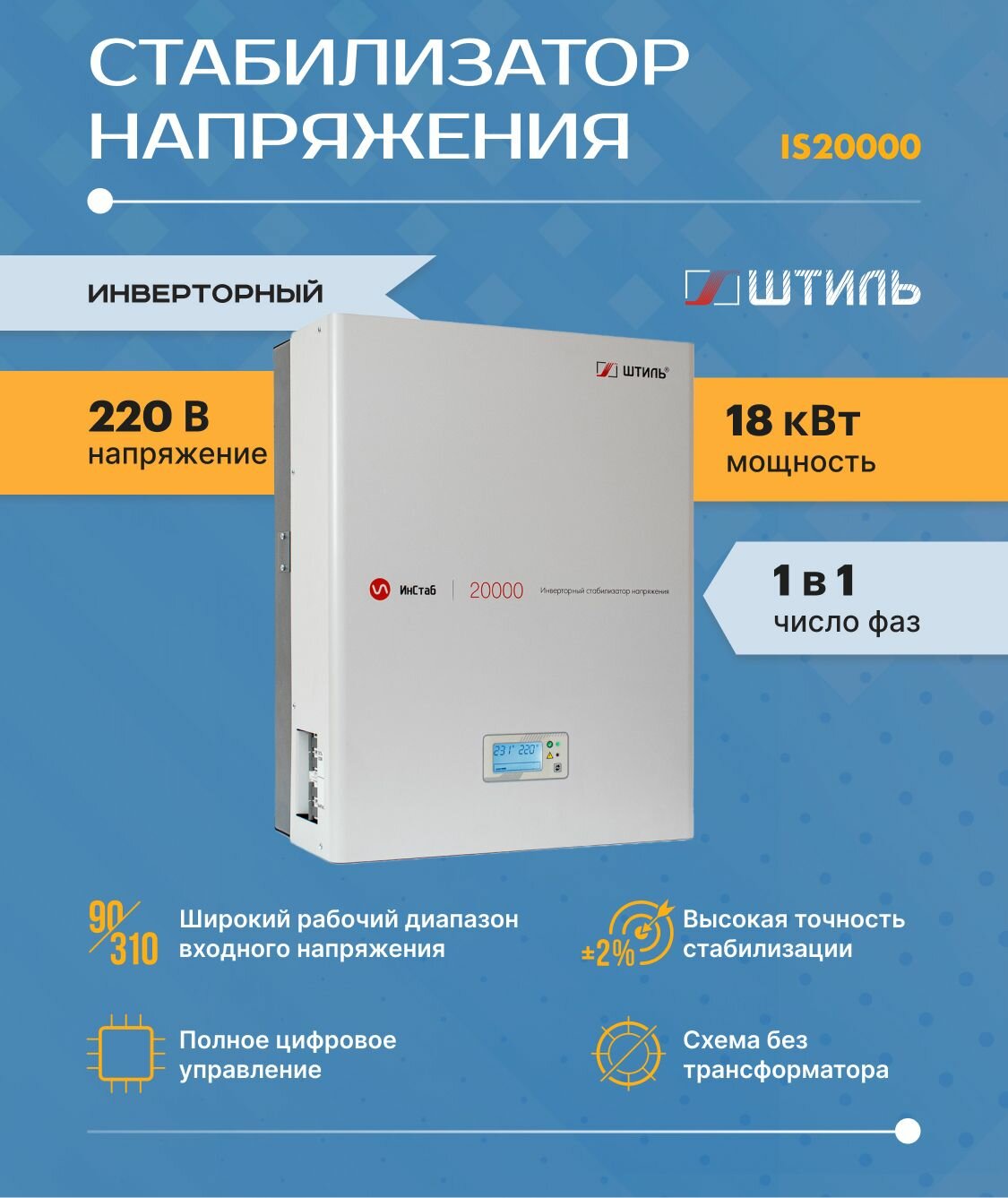 Однофазный стабилизатор Штиль ИнСтаб IS20000 (220 В) (20000 ВА , инверторный) для котла, дома, дачи.