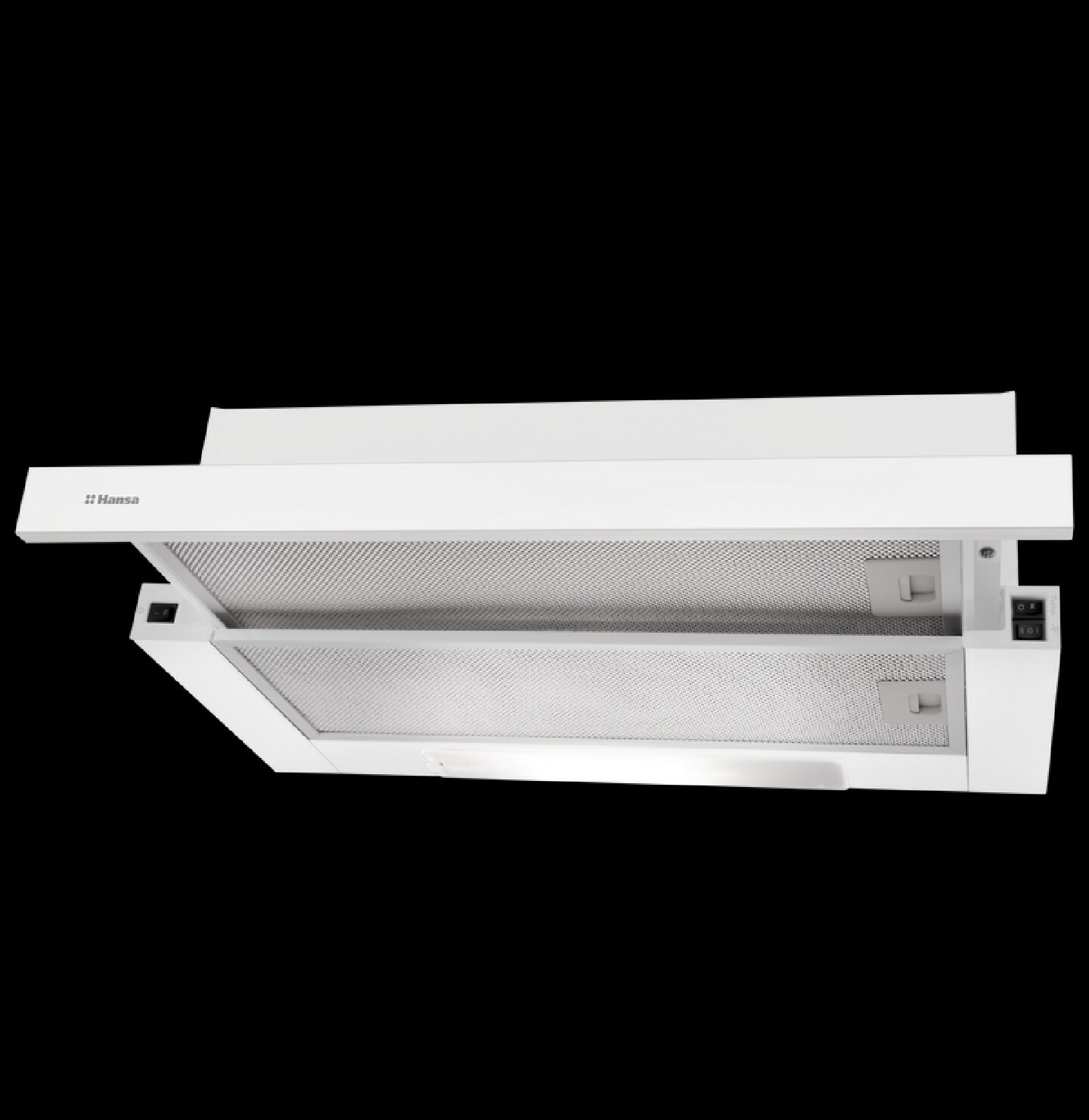 Телескопическая вытяжка Hansa OTP6233WH, 60 см, механическое управление, 3 скорости, режимы отвода и рециркуляции, светодиодная подсветка, белая