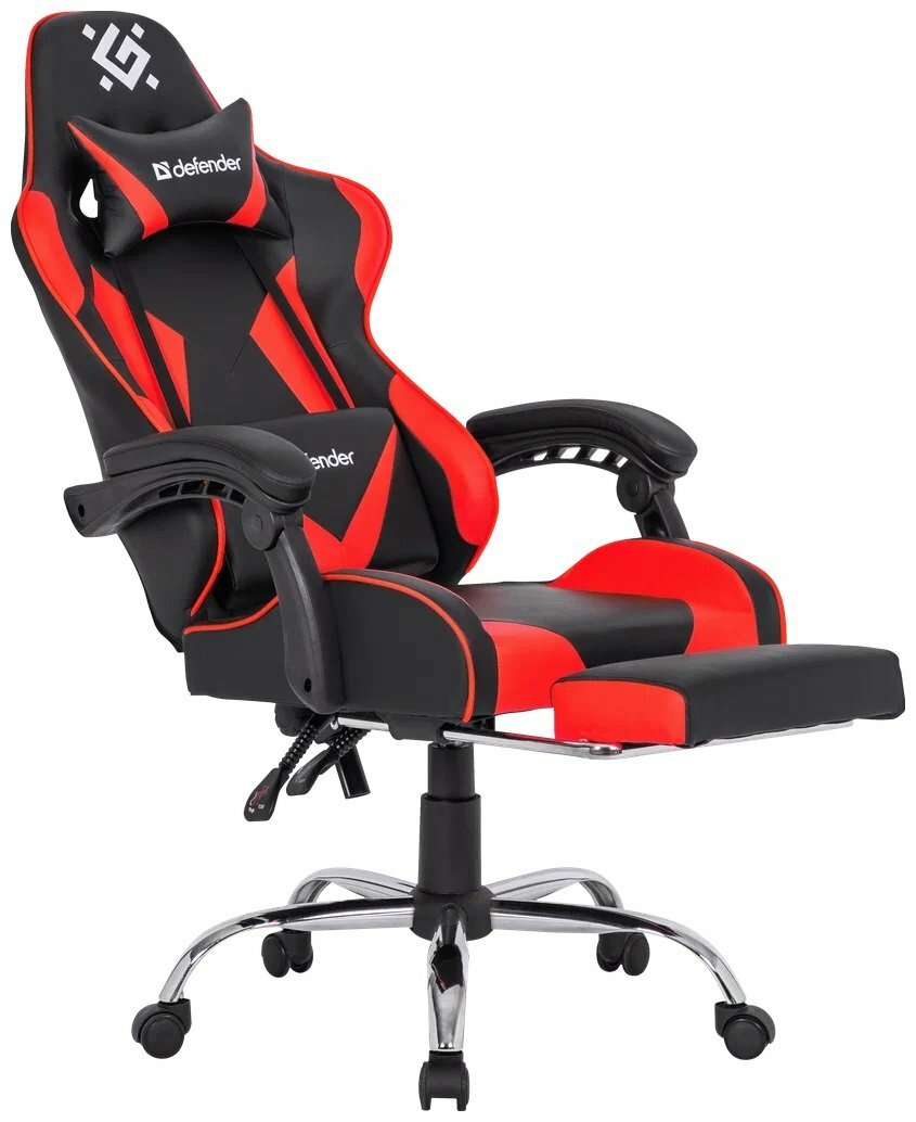 Игровое кресло Defender Rock, черный/красный, подставка, PU