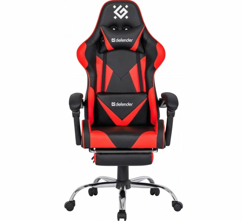 Компьютерное игровое кресло Defender Rock из эко-кожи с регулировкой высоты и подставкой для ног, на металлической раме, 2 подушки.