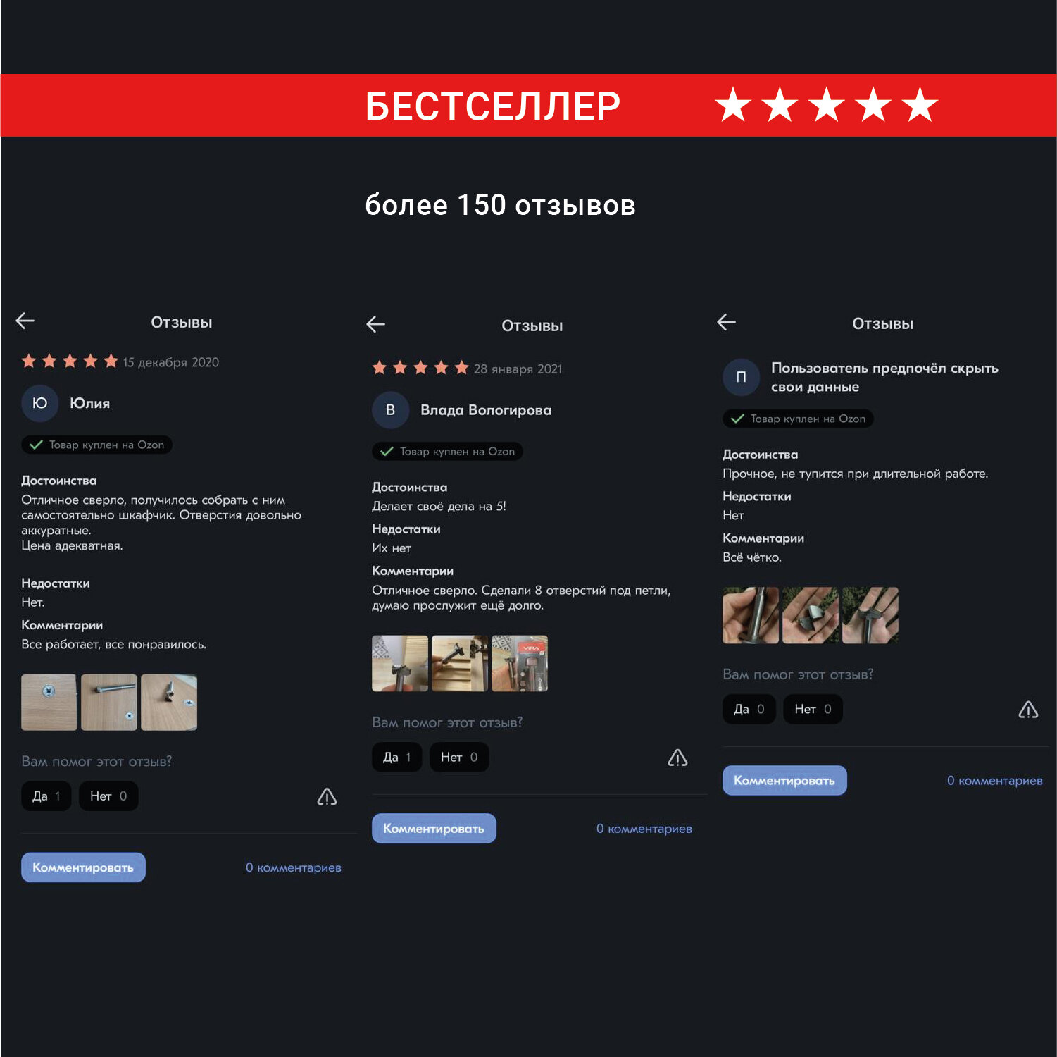 | Отзыв: | Подходит под сверления отверстия мебельного эксцентрика |