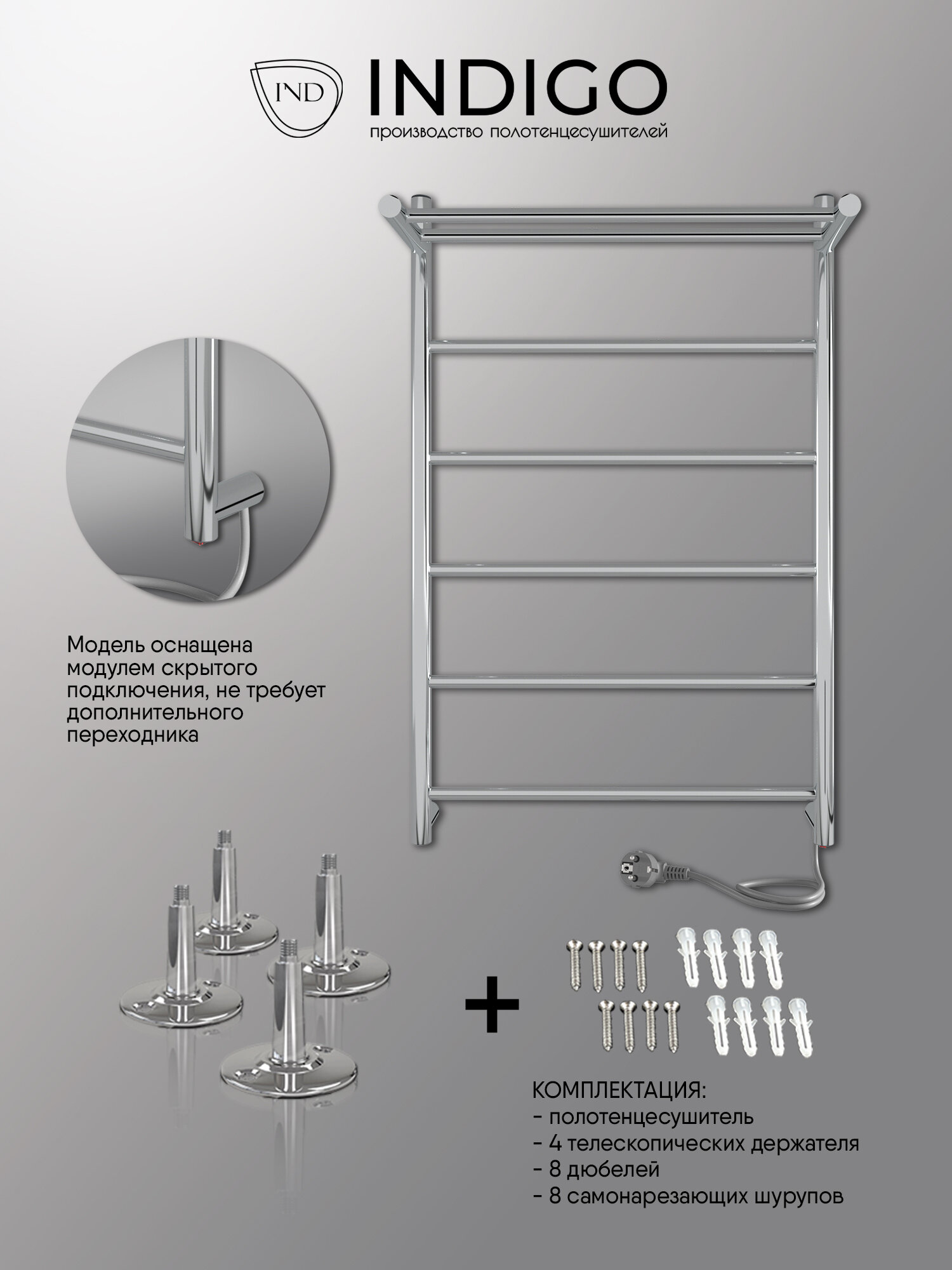 Полотенцесушитель электрический INDIGO Line с полкой 80/50, Полированный
