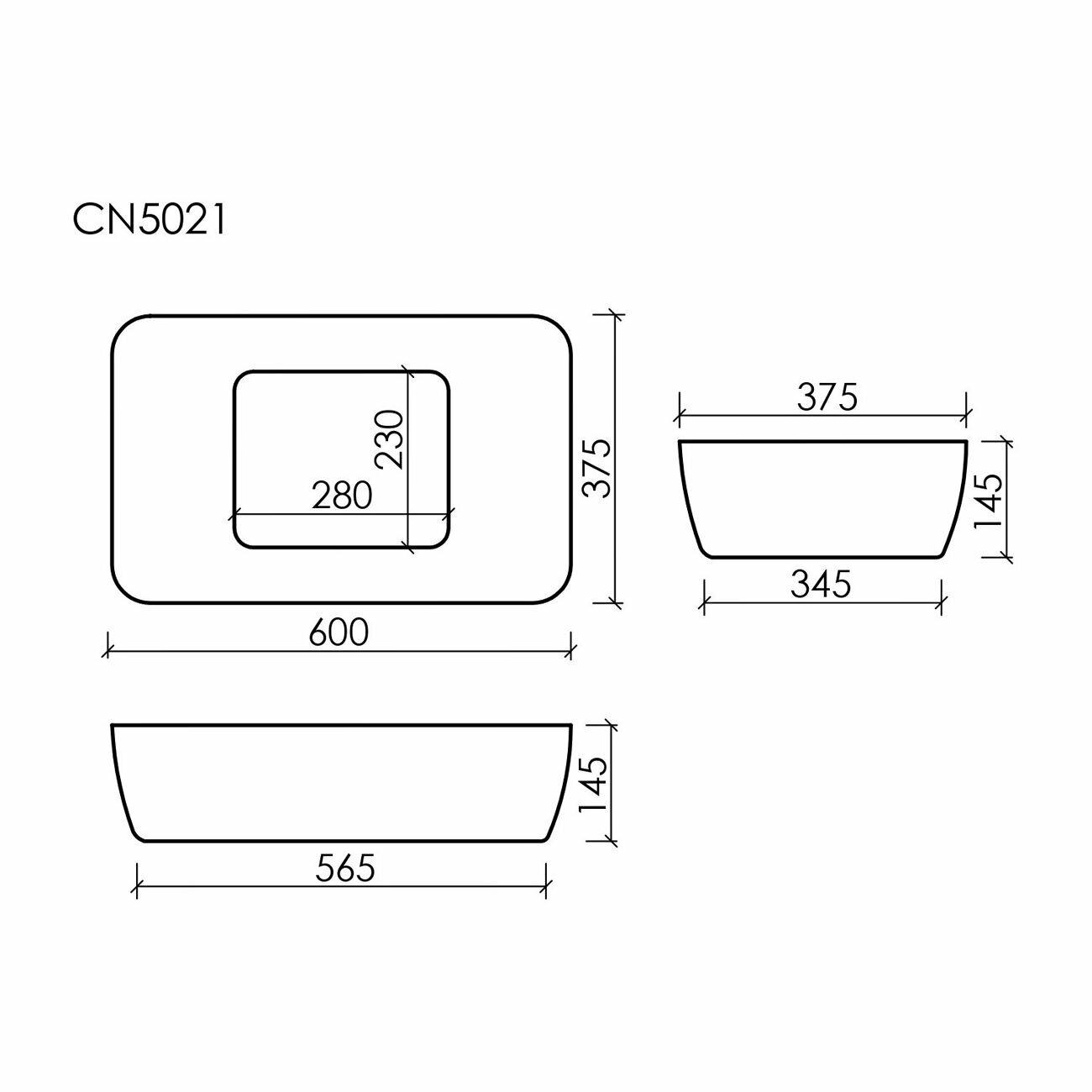 Раковина накладная прямоугольная 60х37,5х14,5 CERAMICA NOVA ELEMENT CN5021