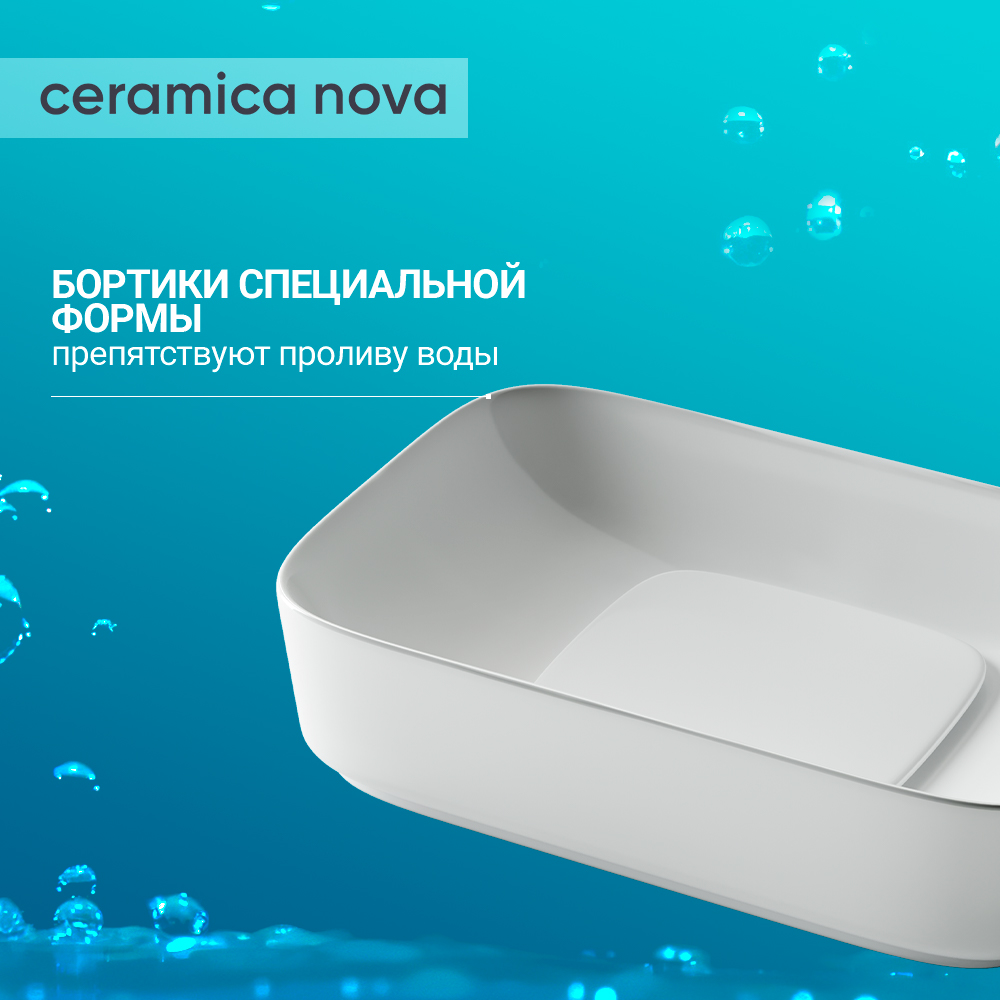 Ceramica Nova Умывальник чаша накладная прямоугольная с керамической накладкой на сливное отверстие Element 600*375*145мм
