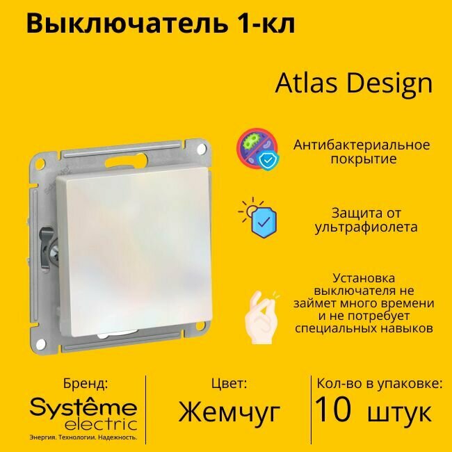 Купить Выключатель Systeme Electric Atlas Design 1-клавишный, ATN000411 Жемчуг - 10 шт.