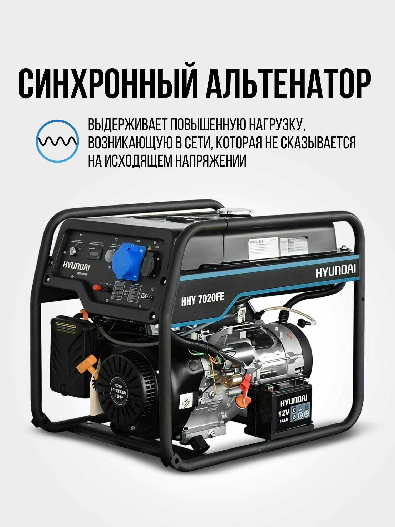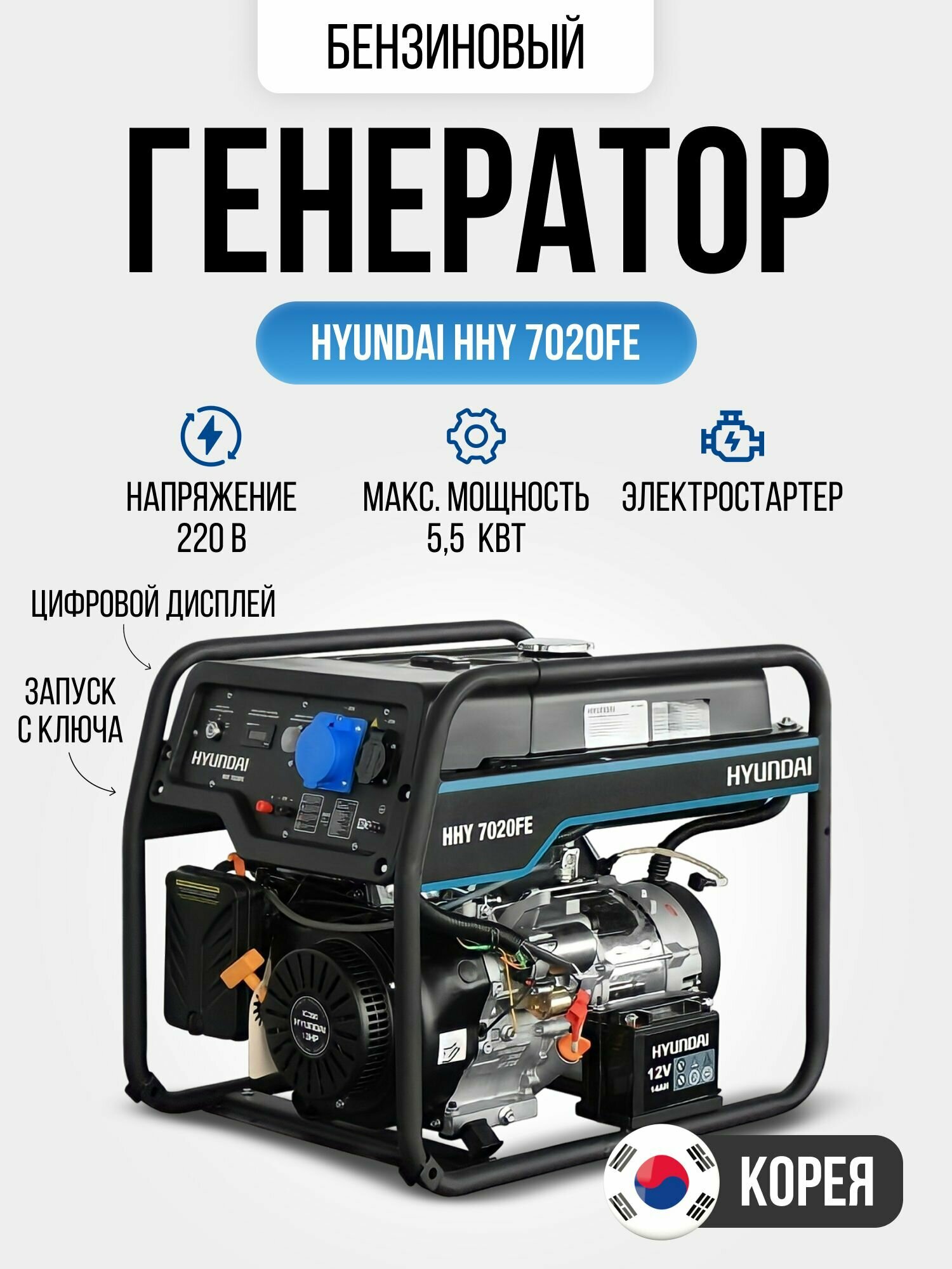 Генератор бензиновый Hyundai HHY 7020FE 5.5 кВт, бензогенератор с ручным и электро запуском двигателя и автоматической регуляцией напряжения, электростанция