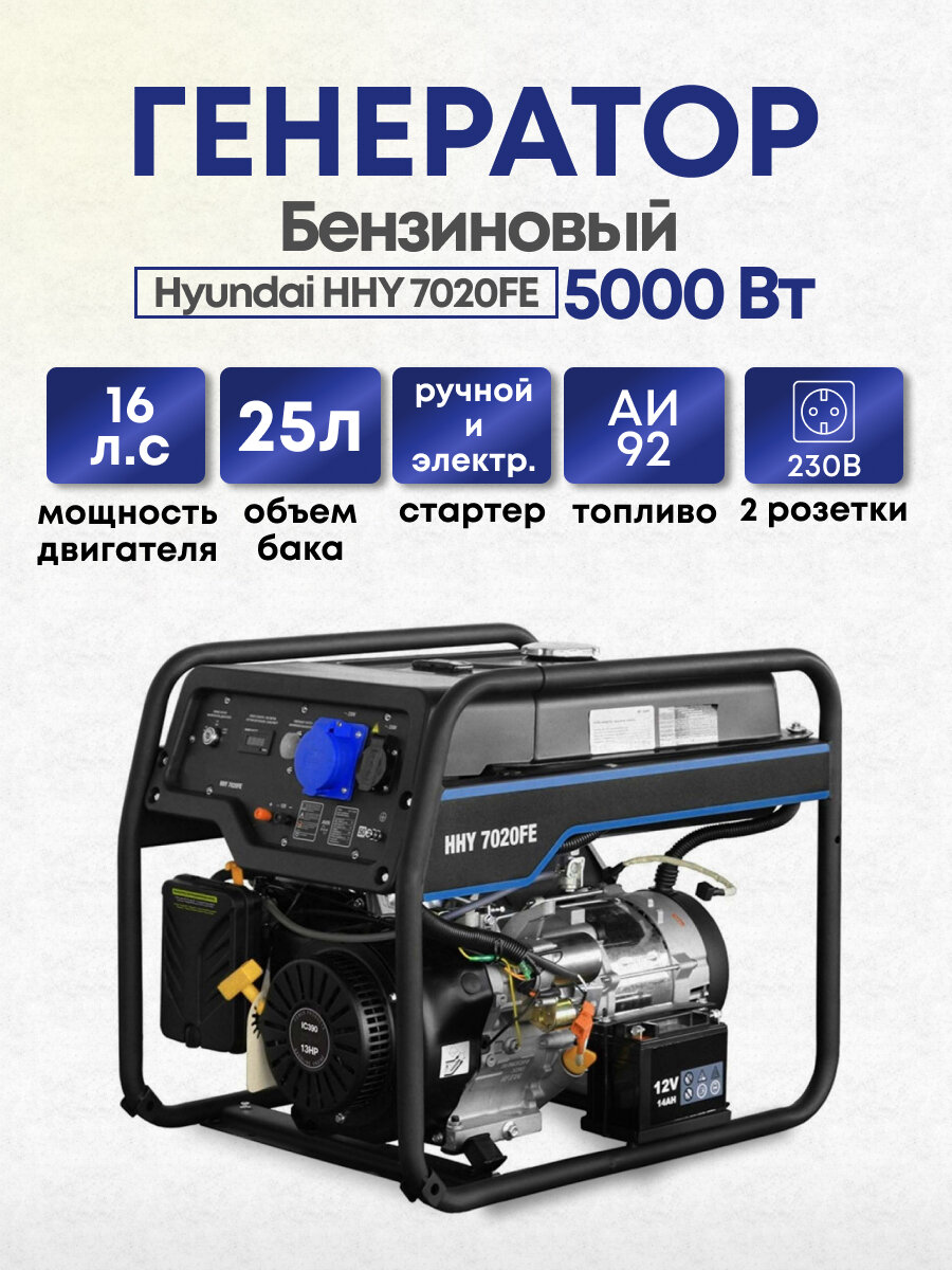 Бензиновый генератор HYUNDAI HHY 7020FE, 230 В, 5.5кВт