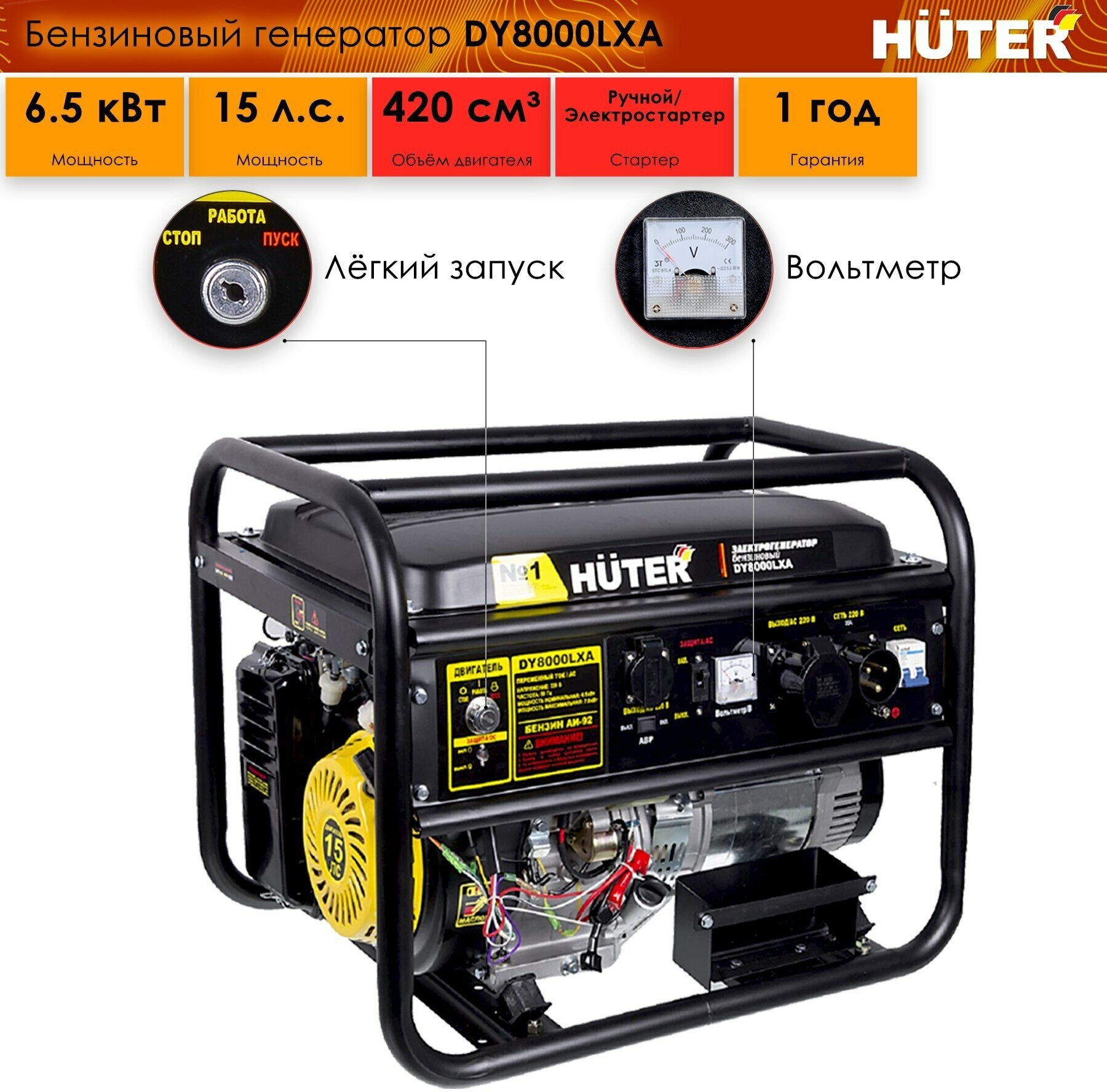 Бензиновый генератор HUTER 8000LXA 6,5кВт запуск электрический/ручной/автоматический