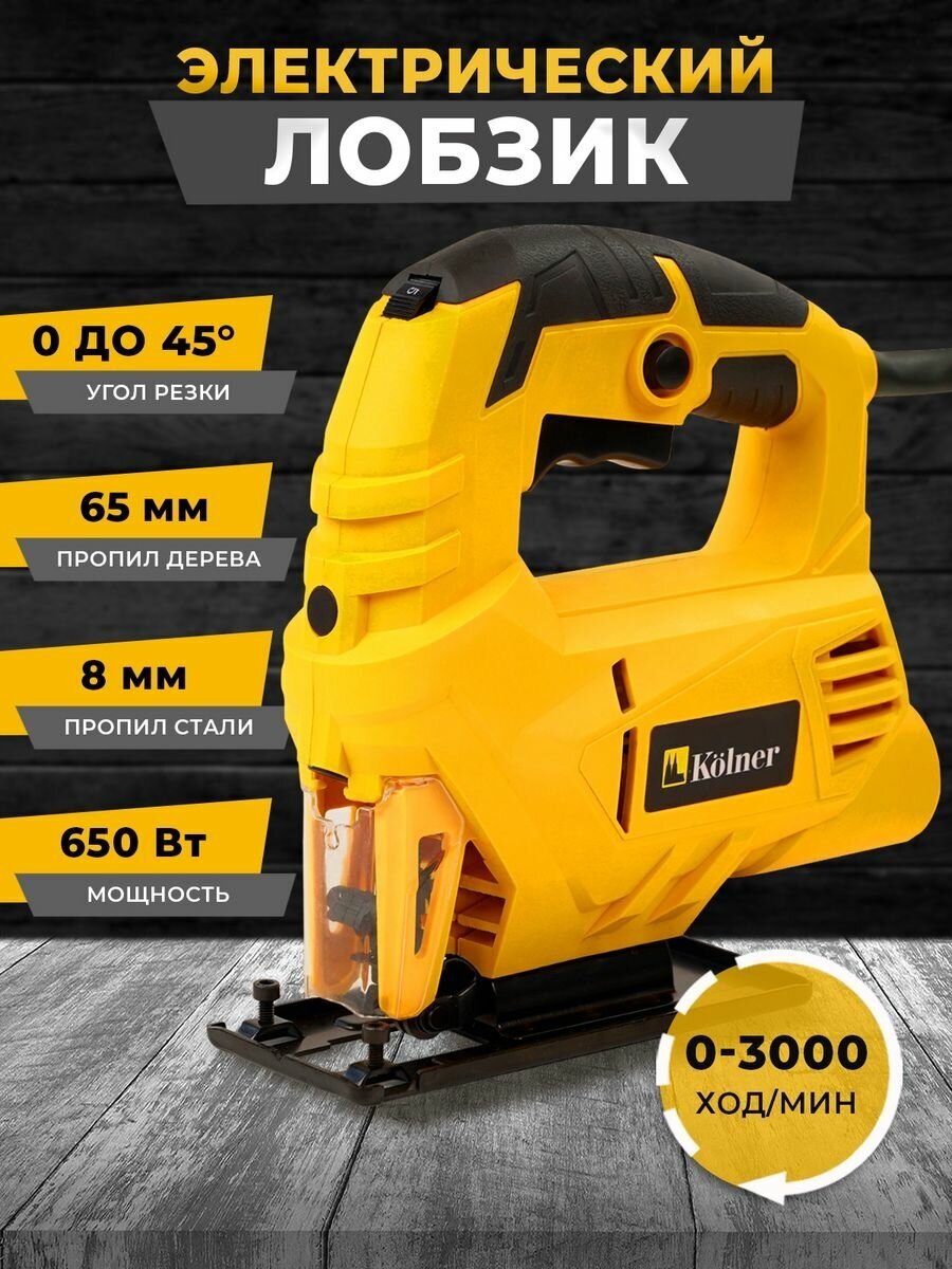 Электролобзик Kolner KJS 650V, желтый, сетевой, возможность подключения пылесоса