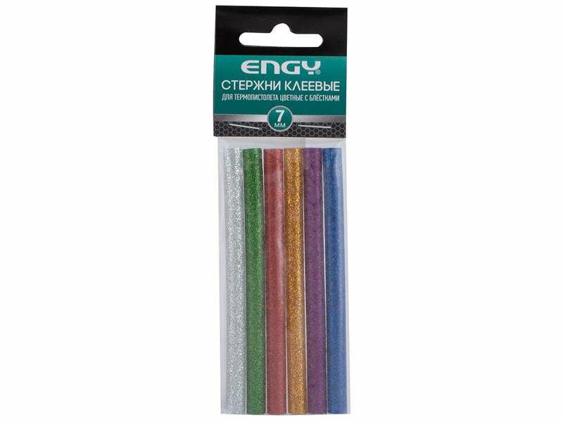 Стержни клеевые цветные с блестками (6 шт; 7х100 мм) для термопистолета Engy 007586 интересное: